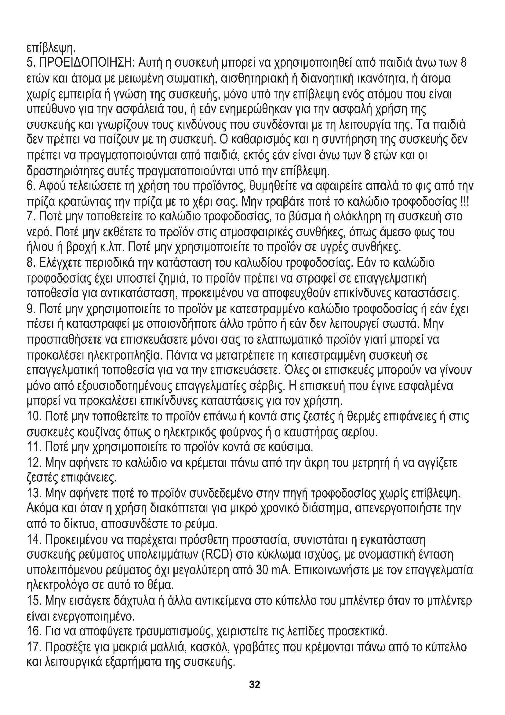 ακόλουθες οδηγίες. Ο κατασκευαστής δεν φέρει καμία ευθύνη για τυχόν ζημιές λόγω κακής χρήσης.32