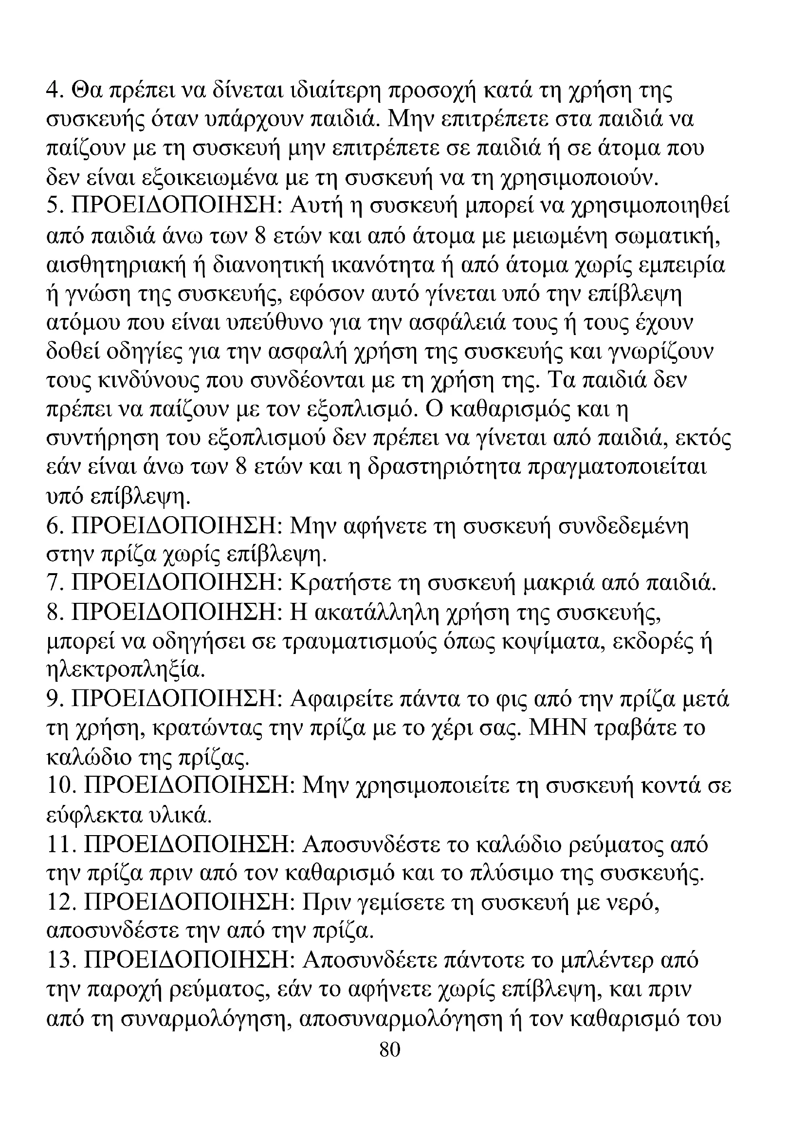την παροχή ρεύματος, εάν το αφήνετε χωρίς επίβλεψη, και πριν από τη συναρμολόγηση, αποσυναρμολόγηση ή τον καθαρισμό του81