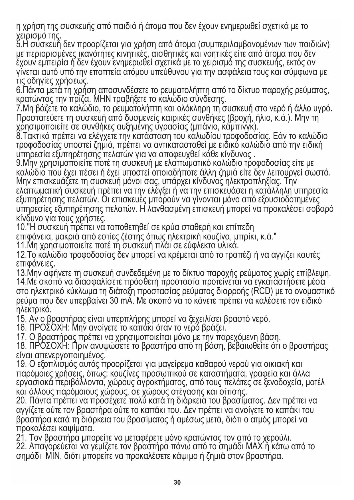 28. Δεν επιτρέπεται να πλένετε τη βάση του βραστήρα άμεσα στο νερό. μπορείτε μόνο να τη