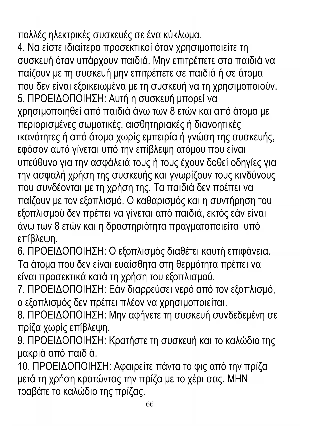9. ΠΡΟΕΙΔΟΠΟΙΗΣΗ: Κρατήστε τη συσκευή και το καλώδιο της