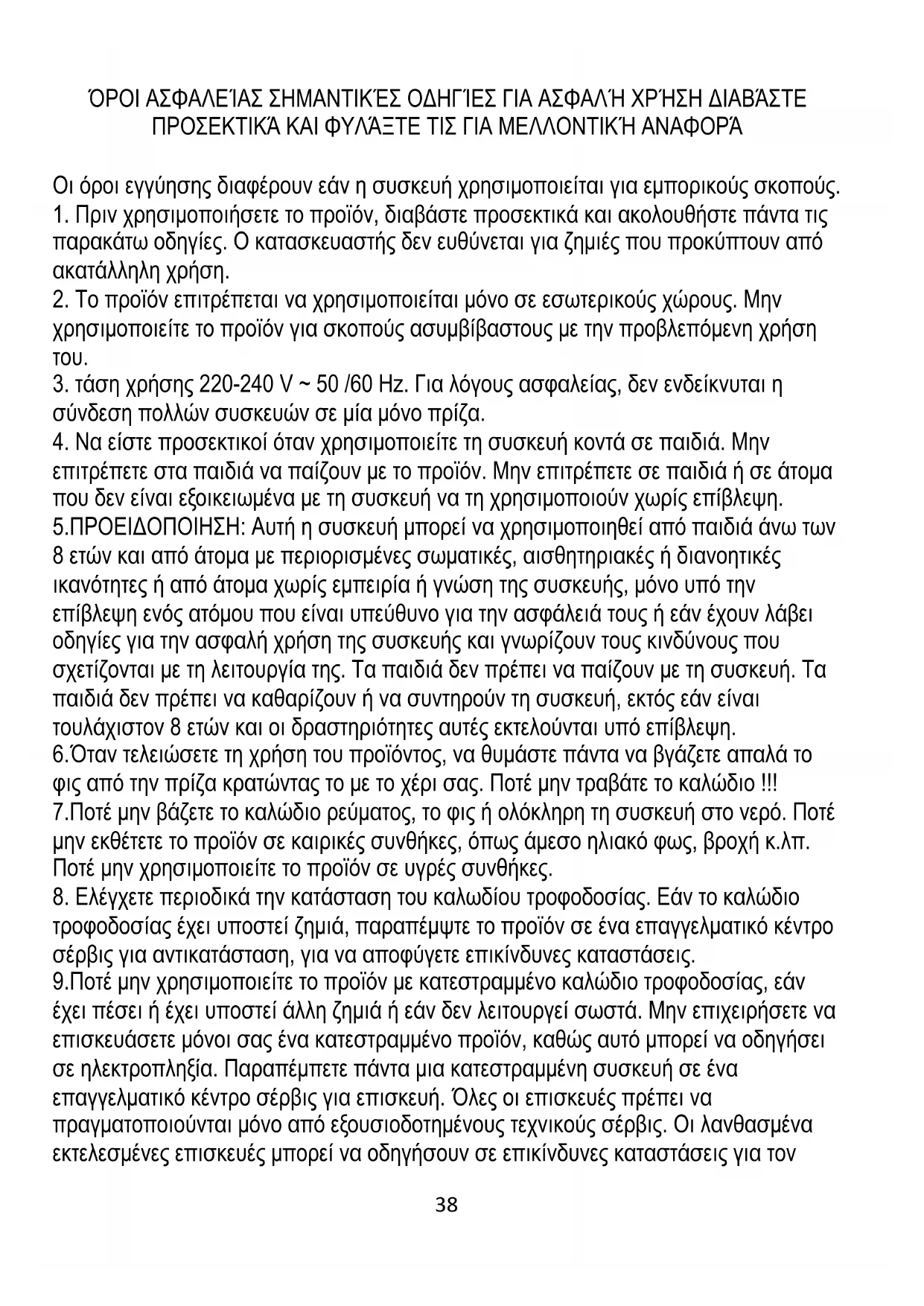 3. τάση χρήσης 220-240 V ~ 50 /60 Hz. Για λόγους ασφαλείας, δεν ενδείκνυται η