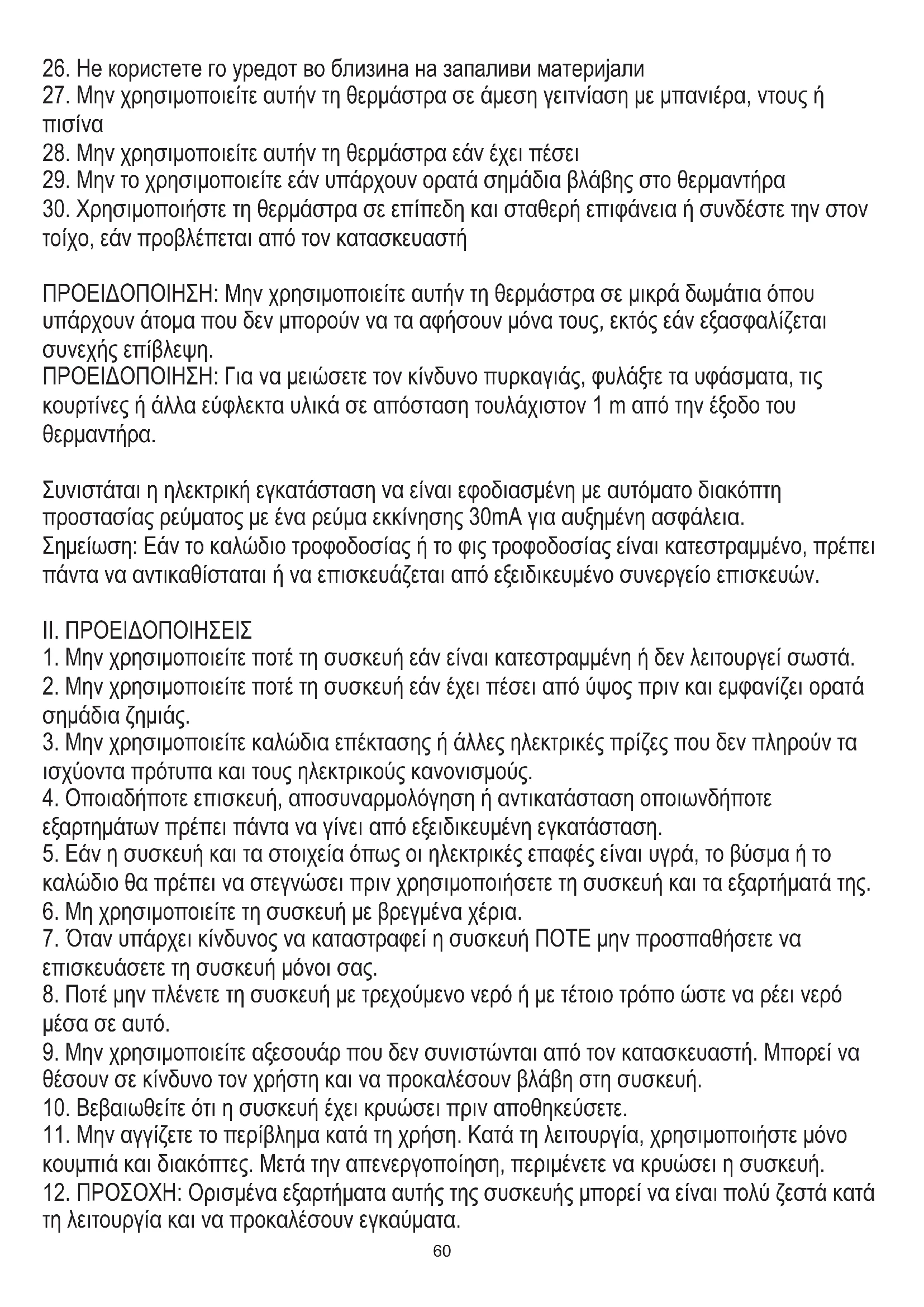 29. Μην το χρησιμοποιείτε εάν υπάρχουν ορατά σημάδια βλάβης στο θερμαντήρα