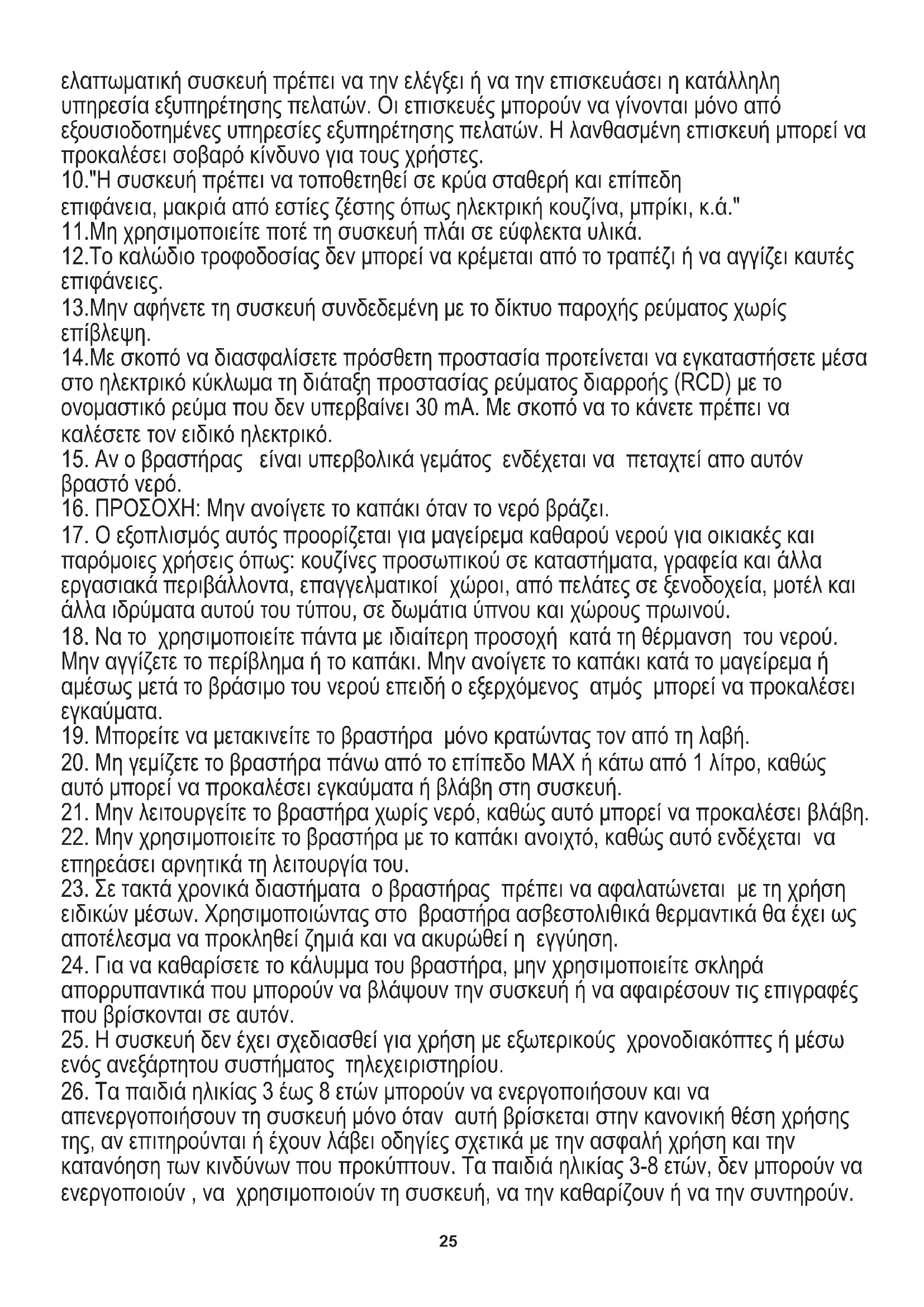 18. Να το χρησιμοποιείτε πάντα με ιδιαίτερη προσοχή κατά τη θέρμανση του νερού.