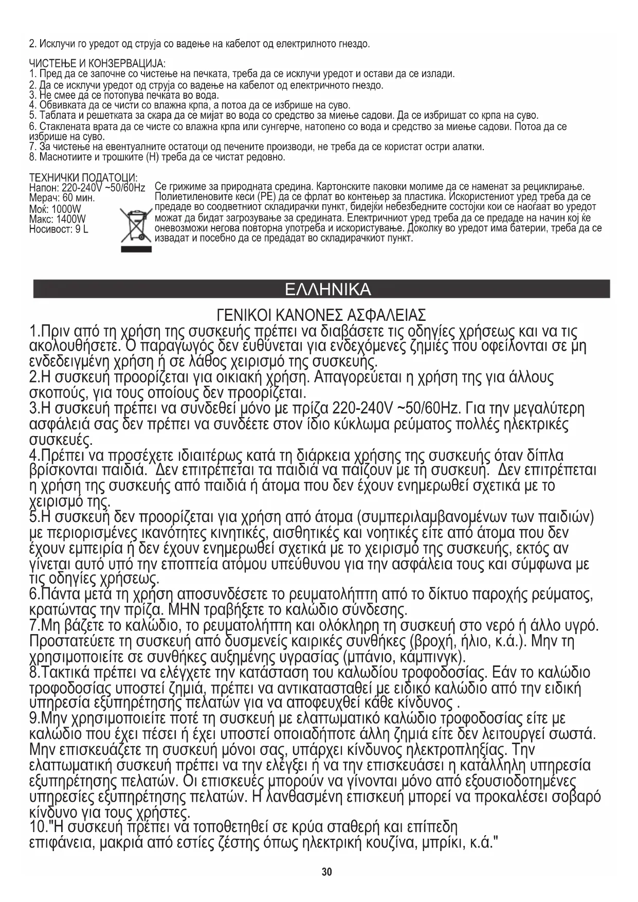 1.Πριν από τη χρήση της συσκευής πρέπει να διαβάσετε τις οδηγίες χρήσεως και να τις ακολουθήσετε. Ο παραγωγός δεν ευθύνεται για ενδεχόμενες ζημιές που οφείλονται σε μη ενδεδειγμένη χρήση ή σε λάθος χειρισμό της συσκευής. 4.Πρέπει να προσέχετε ιδιαιτέρως κατά τη διάρκεια χρήσης της συσκευής όταν δίπλα βρίσκονται παιδιά. Δεν επιτρέπεται τα παιδιά να παίζουν με τη συσκευή. Δεν επιτρέπεται η χρήση της συσκευής από παιδιά ή άτομα που δεν έχουν ενημερωθεί σχετικά με το χειρισμό της. 10."Η συσκευή πρέπει να τοποθετηθεί σε κρύα σταθερή και επίπεδη 9.Μην χρησιμοποιείτε ποτέ τη συσκευή με ελαττωματικό καλώδιο τροφοδοσίας είτε με καλώδιο που έχει πέσει ή έχει υποστεί οποιαδήποτε άλλη ζημιά είτε δεν λειτουργεί σωστά. Μην επισκευάζετε τη συσκευή μόνοι σας, υπάρχει κίνδυνος ηλεκτροπληξίας. Την ελαττωματική συσκευή πρέπει να την ελέγξει ή να την επισκευάσει η κατάλληλη υπηρεσία εξυπηρέτησης πελατών. Οι επισκευές μπορούν να γίνονται μόνο από εξουσιοδοτημένες υπηρεσίες εξυπηρέτησης πελατών. Η λανθασμένη επισκευή μπορεί να προκαλέσει σοβαρό κίνδυνο για τους χρήστες. επιφάνεια, μακριά από εστίες ζέστης όπως ηλεκτρική κουζίνα, μπρίκι, κ.ά." 8.Τακτικά πρέπει να ελέγχετε την κατάσταση του καλωδίου τροφοδοσίας. Εάν το καλώδιο τροφοδοσίας υποστεί ζημιά, πρέπει να αντικατασταθεί με ειδικό καλώδιο από την ειδική υπηρεσία εξυπηρέτησης πελατών για να αποφευχθεί κάθε κίνδυνος .