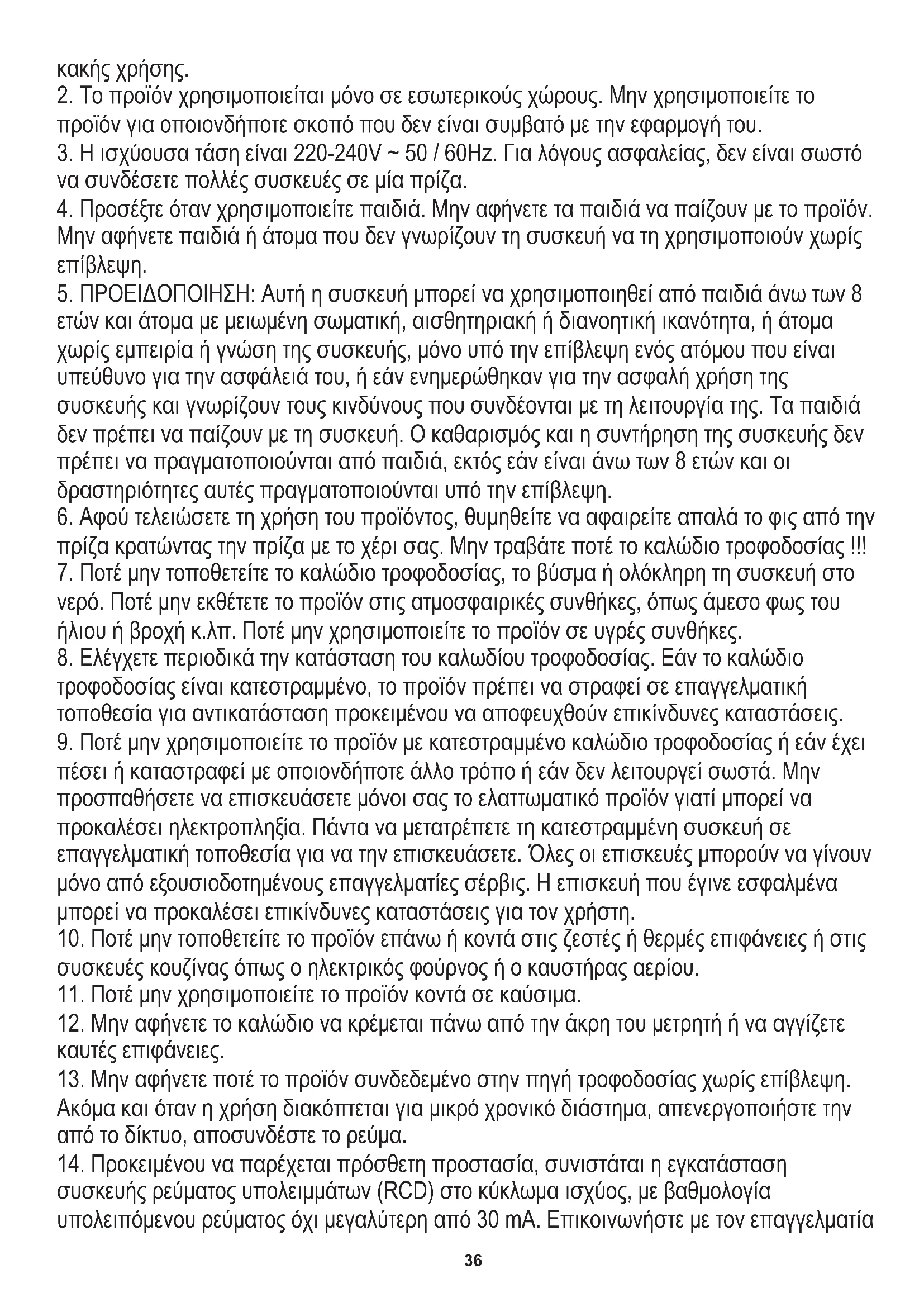 13. Μην αφήνετε ποτέ το προϊόν συνδεδεμένο στην πηγή τροφοδοσίας χωρίς επίβλεψη.