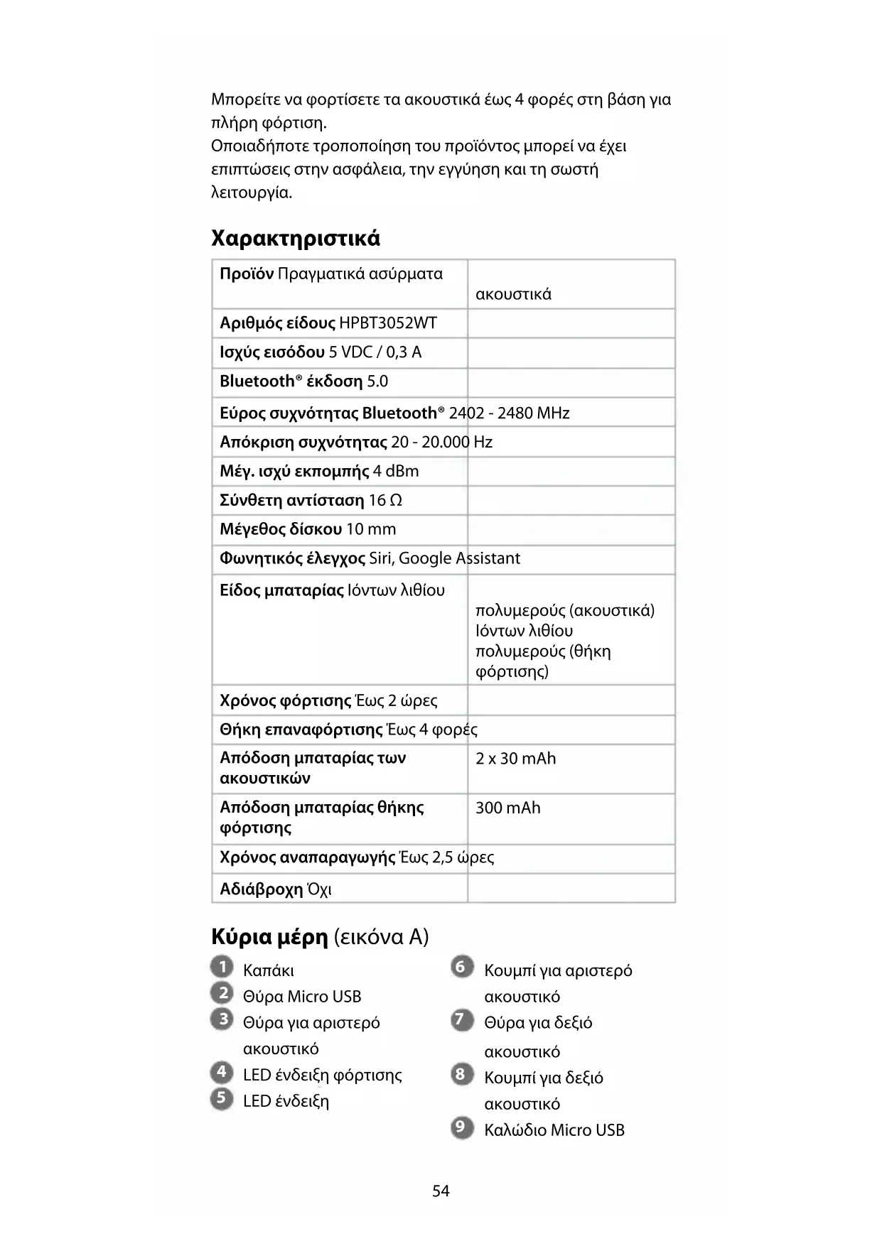 300 mAh Χρόνος αναπαραγωγής Έως 2,5 ώρες Αδιάβροχη Όχι Κύρια μέρη (εικόνα A)