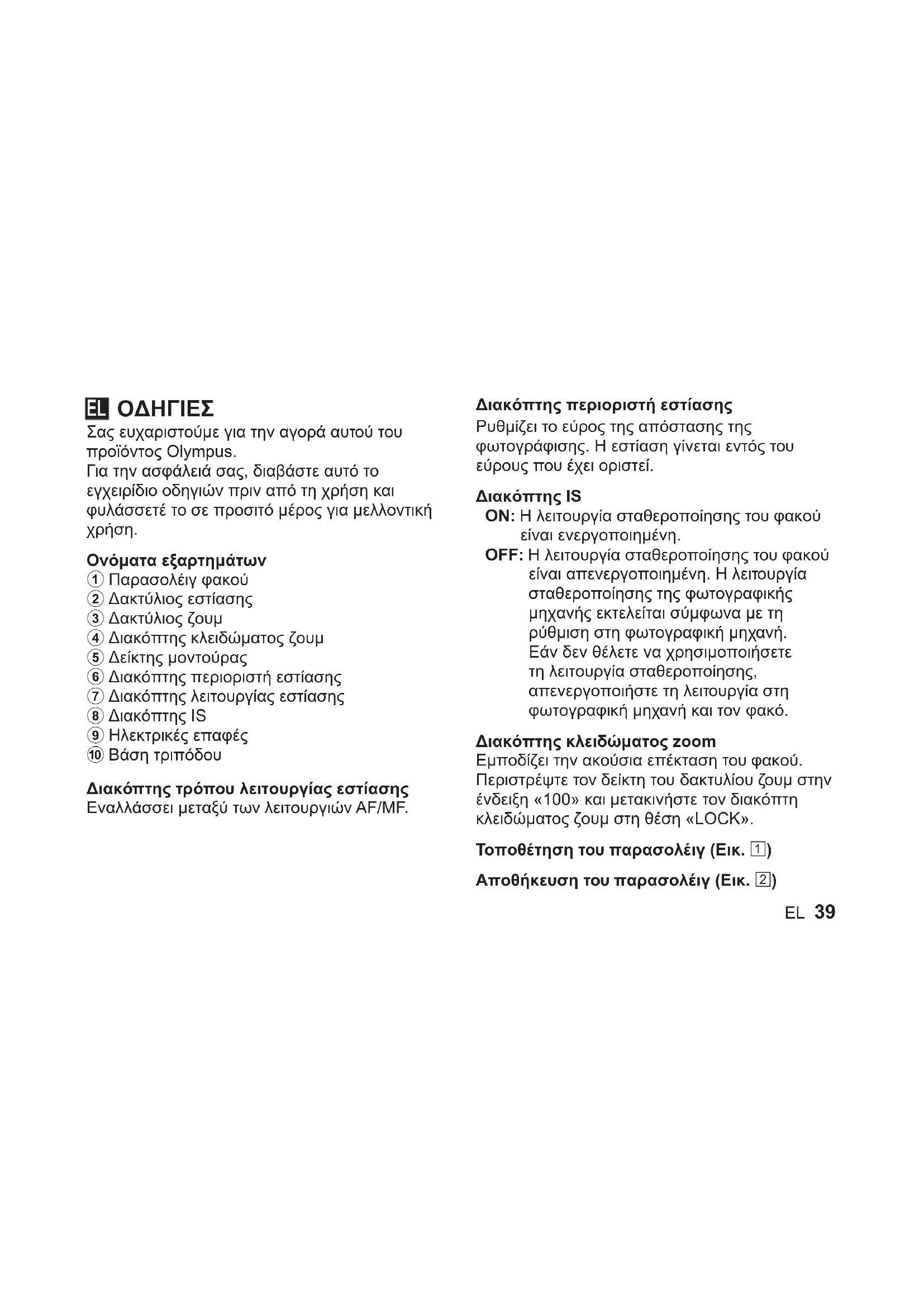 ΕΓΧΕΙΡΊΔΙΟ ΧΡΉΣΗΣ M.Zuiko Digital ED 100400mm f56.3 IS OLYMPUS