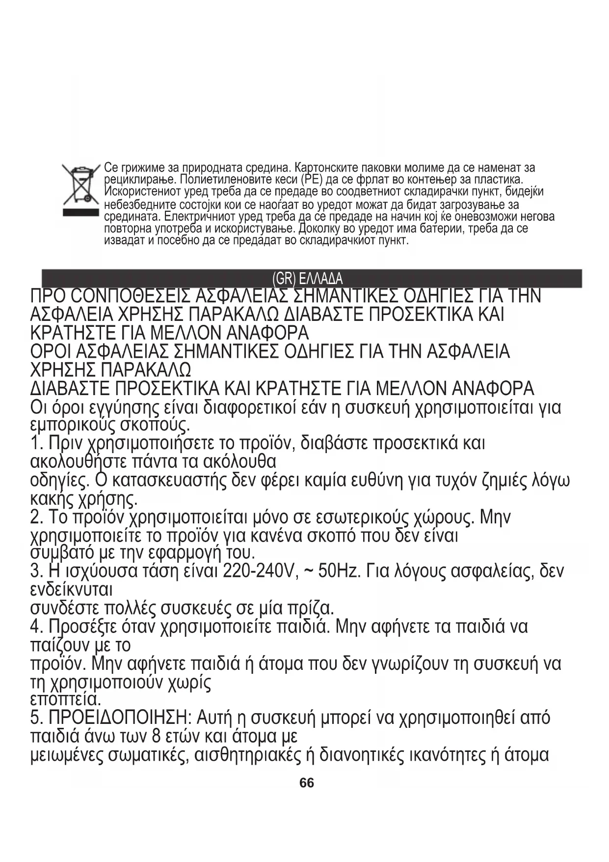 29. Μην ανοίγετε και αποσυναρμολογείτε τη συσκευή. Για ανακύκλωση
