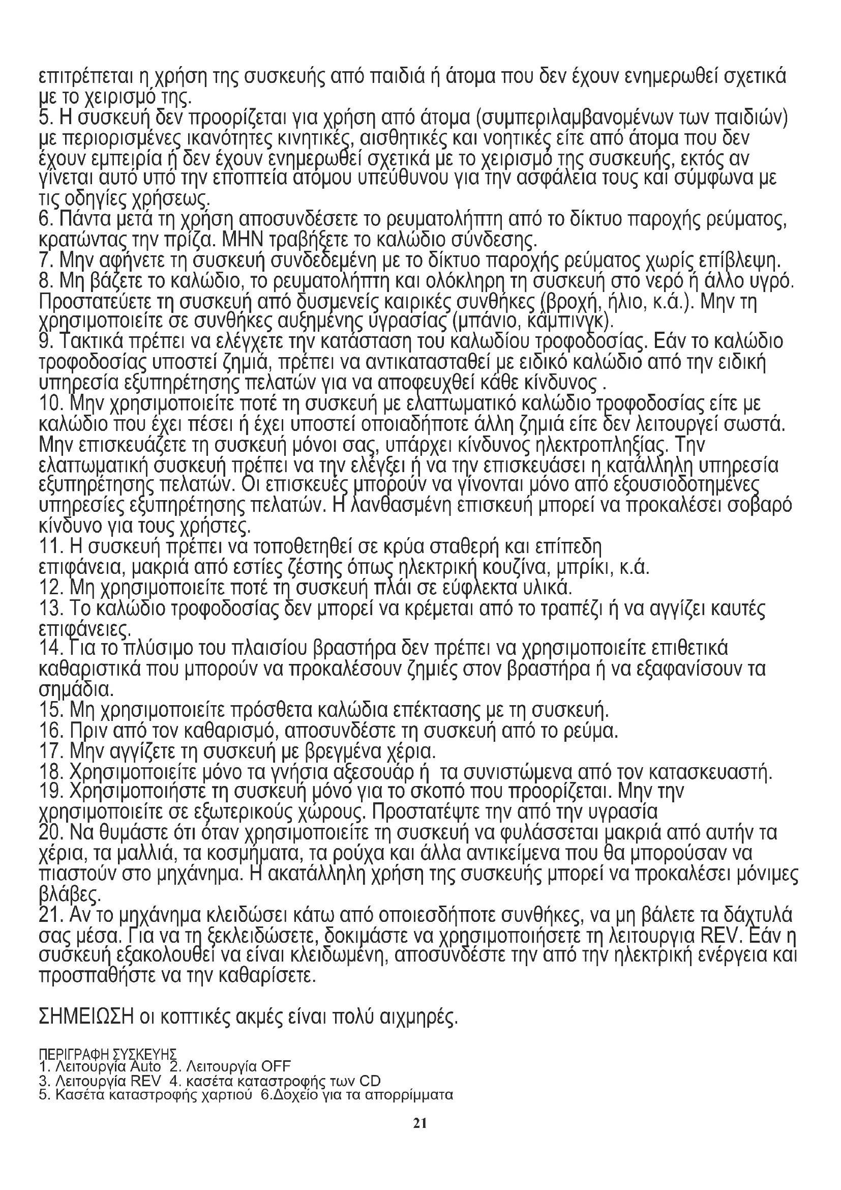20επιτρέπεται η χρήση της συσκευής από παιδιά ή άτομα που δεν έχουν ενημερωθεί σχετικά με το χειρισμό της.
