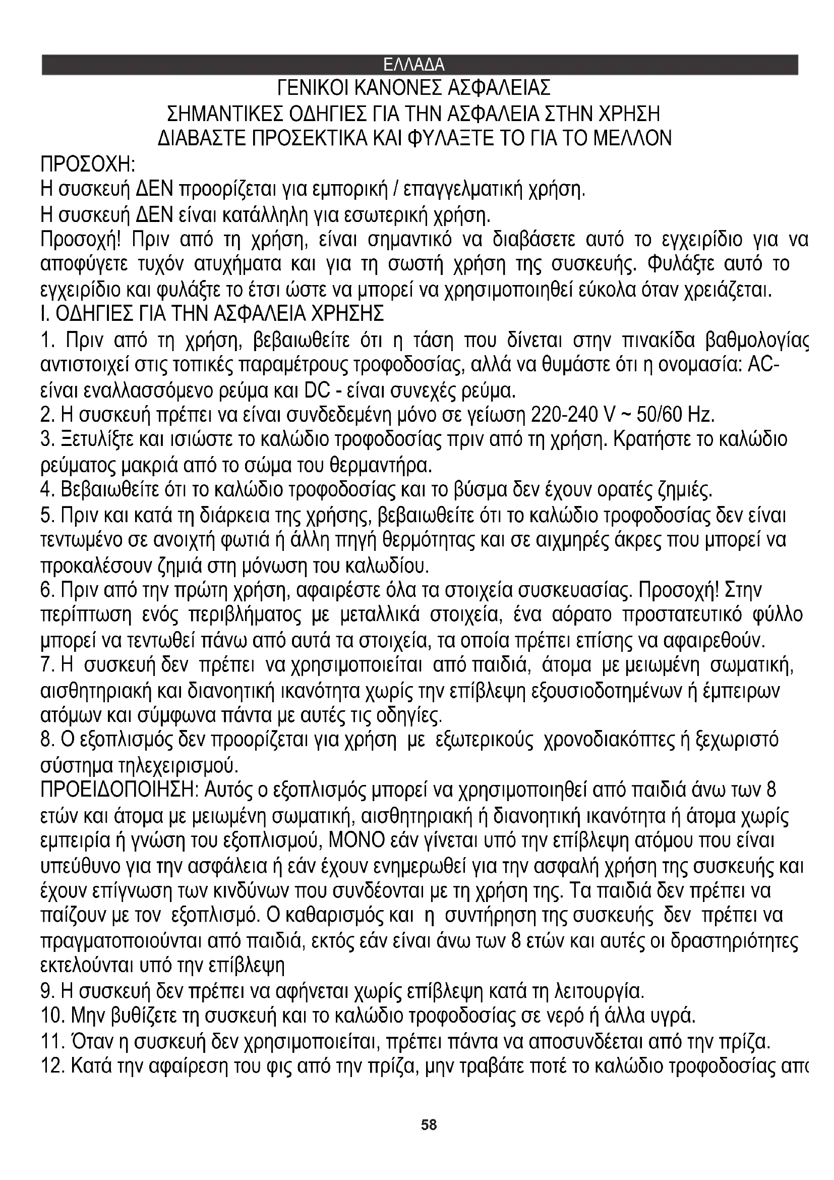 Η συσκευή ΔΕΝ προορίζεται για εμπορική / επαγγελματική χρήση. Η συσκευή ΔΕΝ είναι κατάλληλη για εσωτερική χρήση. Προσοχή! Πριν από τη χρήση, είναι σημαντικό να διαβάσετε αυτό το εγχειρίδιο για να αποφύγετε τυχόν ατυχήματα και για τη σωστή χρήση της συσκευής. Φυλάξτε αυτό το εγχειρίδιο και φυλάξτε το έτσι ώστε να μπορεί να χρησιμοποιηθεί εύκολα όταν χρειάζεται.