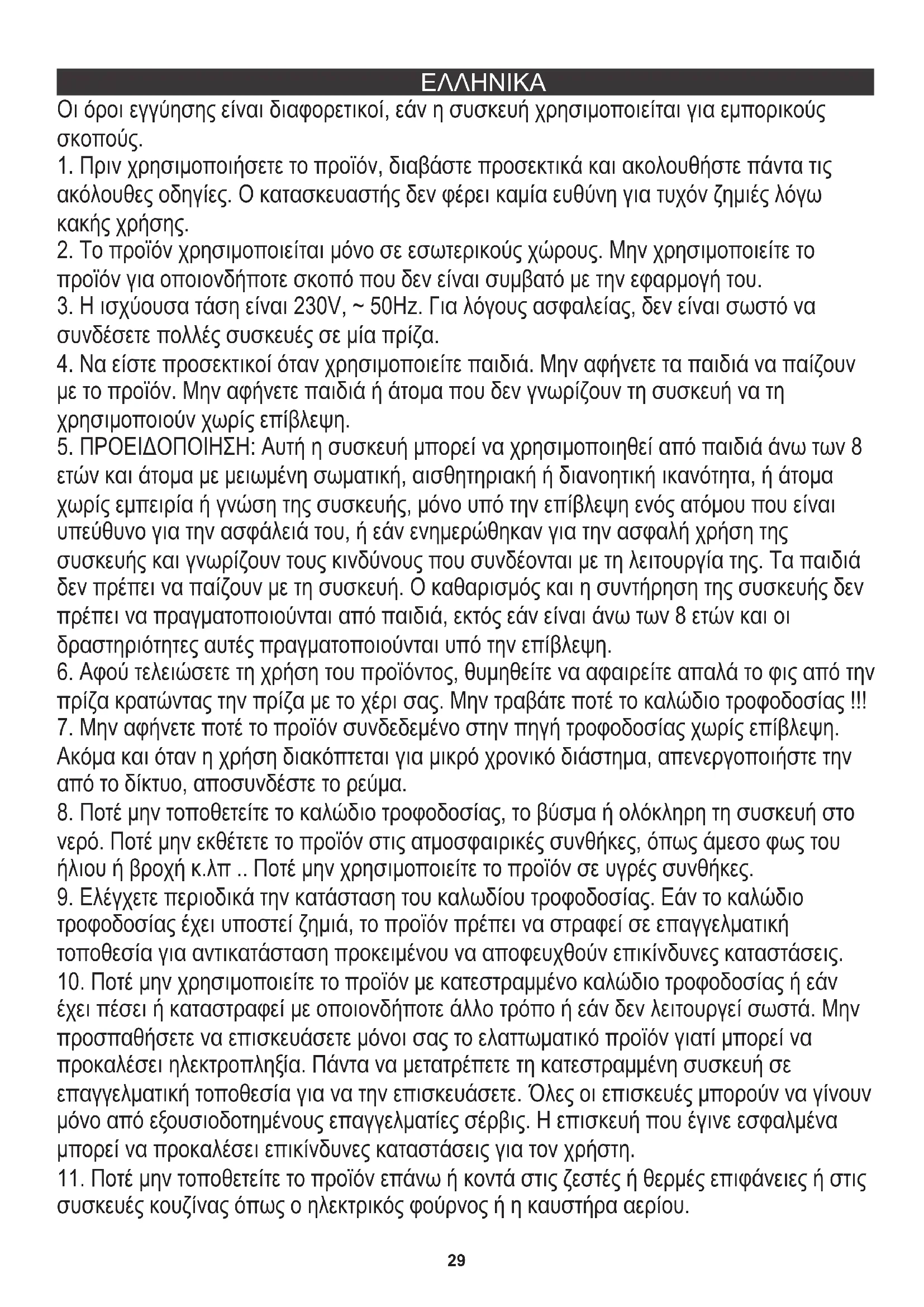 5. ΠΡΟΕΙΔΟΠΟΙΗΣΗ: Αυτή η συσκευή μπορεί να χρησιμοποιηθεί από παιδιά άνω των 8