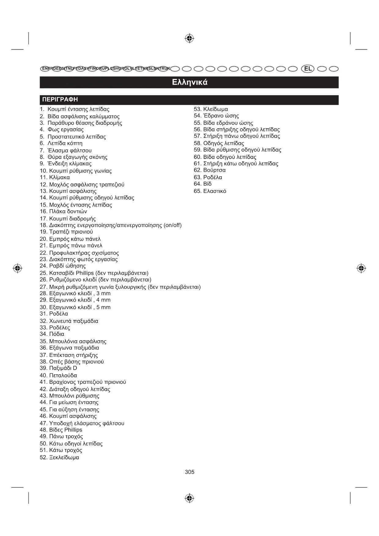 EN FR DE ES IT NL PT DA SV FI NO RU PL CS HU RO LV LT ET HR SL SK TR UK λεπίδας, των οδηγών της λεπίδας και των εδράνων