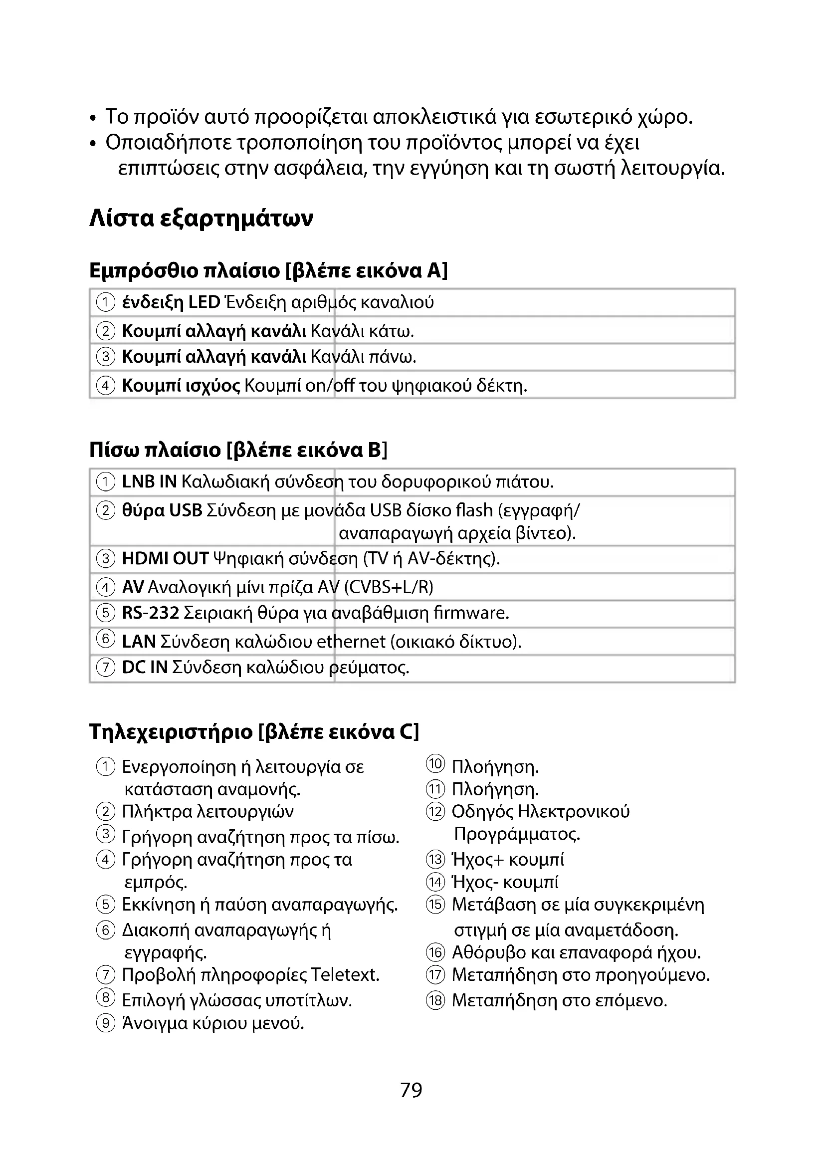 DVBS2265BK__MAN_COMP_0719_(19314 1422)_85x120_booklet_V03.indd 83 16-7-2019 12:50:1784 IR Αισθητήρας τηλεχειριστηρίου USB Σύνδεση με μονάδα USB 2.0 δίσκο ash RS-232 Για αναβάθμιση του
