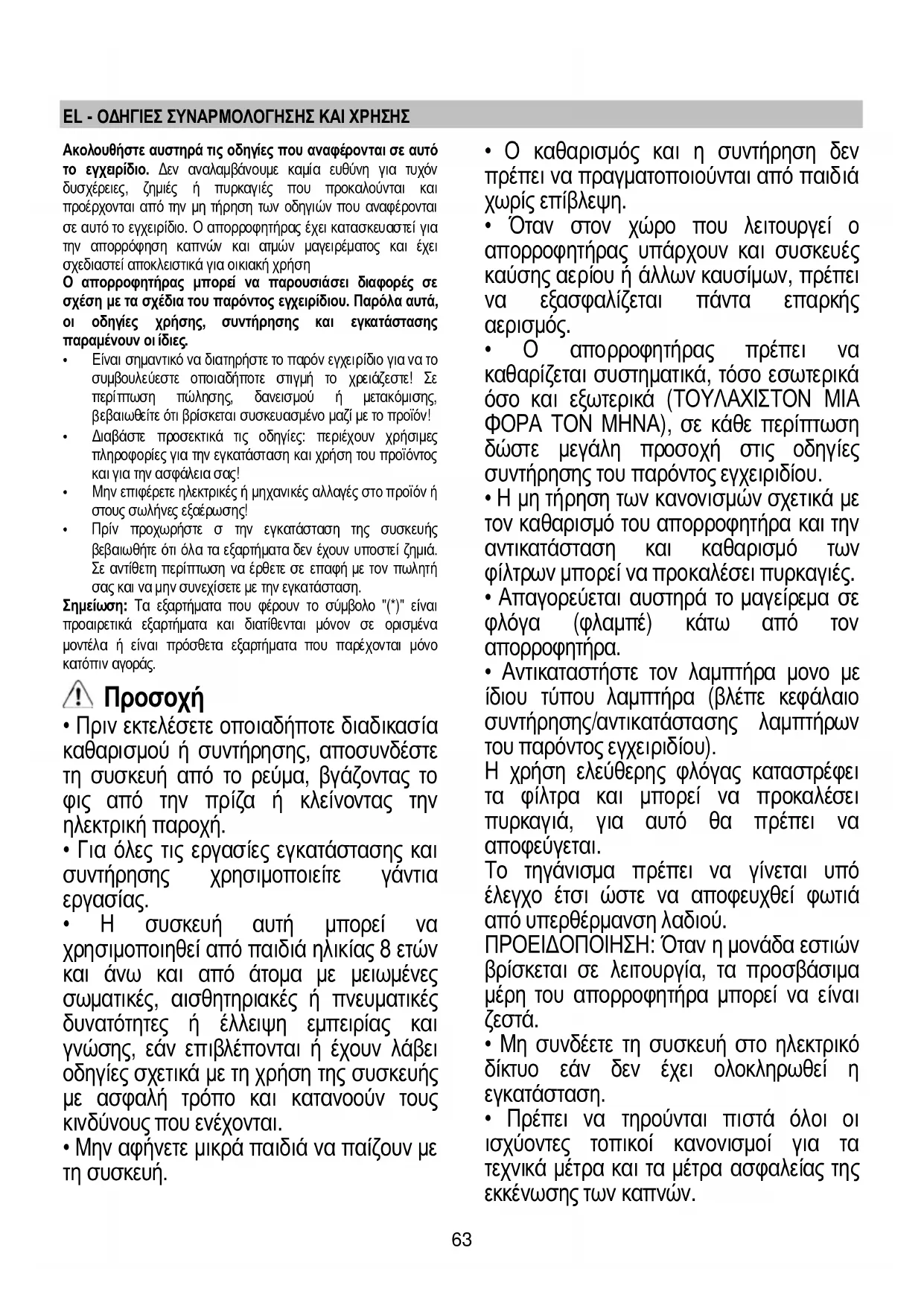 - Η μη τήρηση των κανονισμών σχετικά με τον καθαρισμό του απορροφητήρα και την αντικατάσταση και καθαρισμό των φίλτρων μπορεί να προκαλέσει πυρκαγιές.