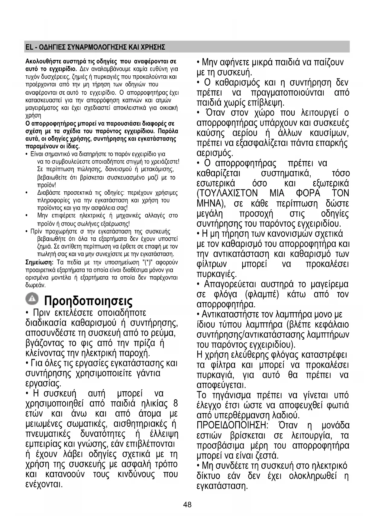 - Όταν στον χώρο που λειτουργεί ο απορροφητήρας υπάρχουν και συσκευές καύσης αερίου ή άλλων καυσίμων, πρέπει να εξασφαλίζεται πάντα επαρκής