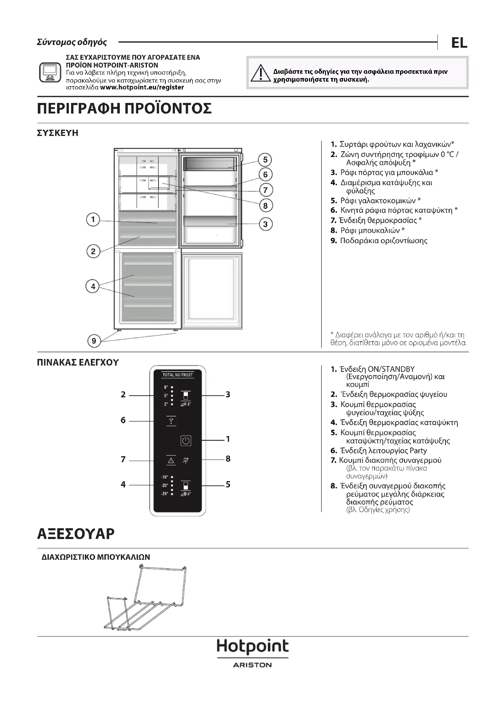 ΣΑΣ ΕΥΧΑΡΙΣΤΟΥΜΕ ΠΟΥ ΑΓΟΡΑΣΑΤΕ ΕΝΑ ΠΡΟΪΟΝ HOTPOINT-ARISTONΓια να λάβετε πλήρη τεχνική υποστήριξη, παρακαλούμε να καταχωρίσετε τη συσκευή σας στην ιστοσελίδα www . hotpoint . eu/ register Διαβάστε τις οδηγίες για την ασφάλεια προσεκτικά πριν χρησιμοποιήσετε τη συσκευή.