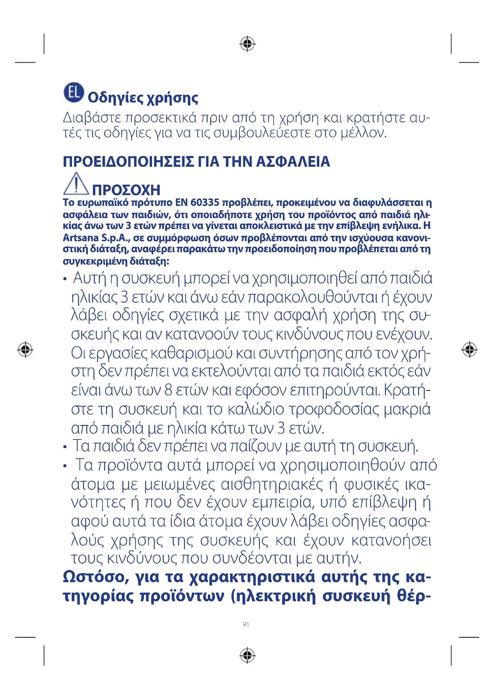 Το ευρωπαϊκό πρότυπο EN 60335 προβλέπει, προκειμένου να διαφυλάσσεται η ασφάλεια των παιδιών, ότι οποιαδήποτε χρήση του προϊόντος από παιδιά ηλι