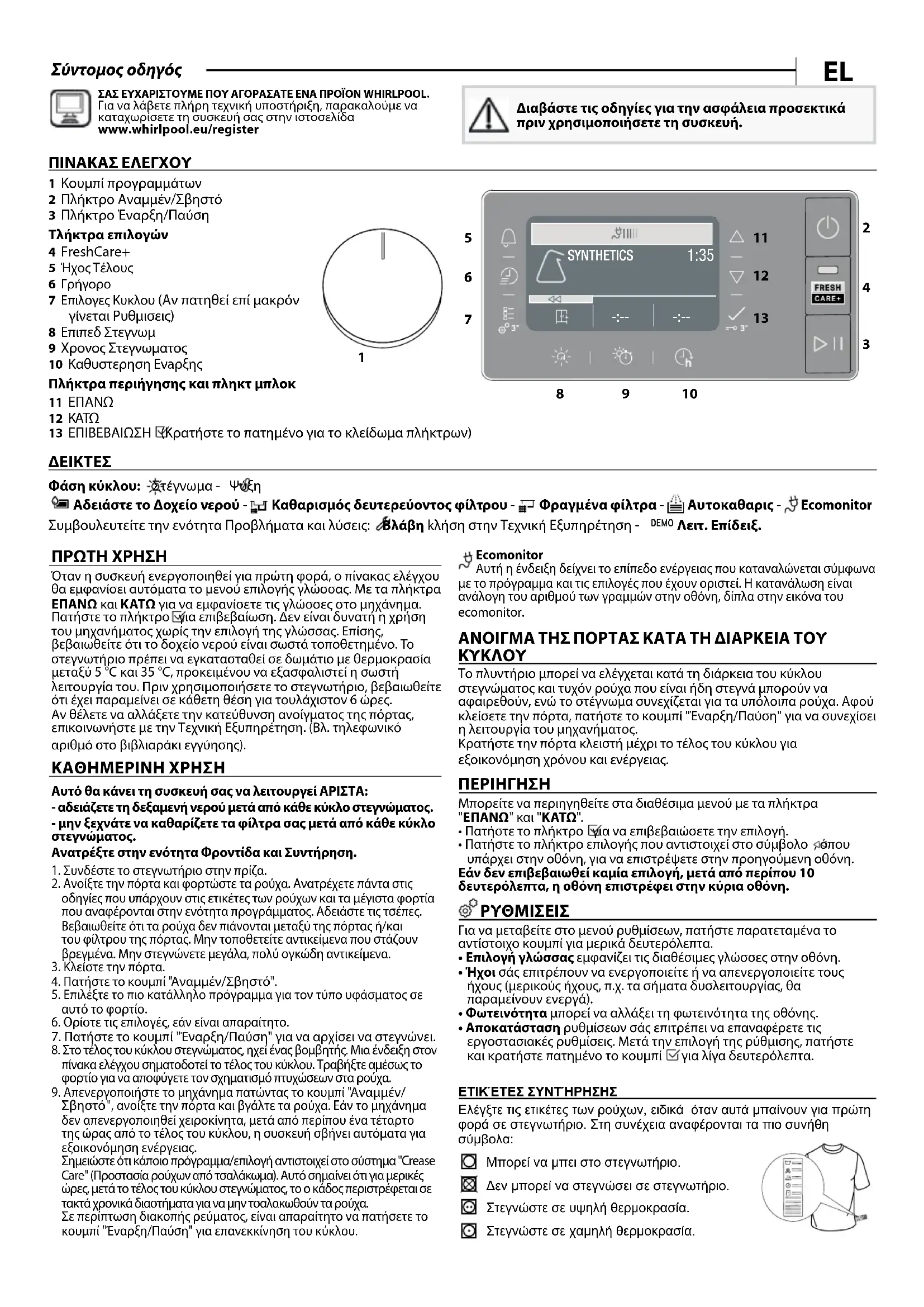 ΕΓΧΕΙΡΊΔΙΟ ΧΡΉΣΗΣ W7 D93SB EE WHIRLPOOL