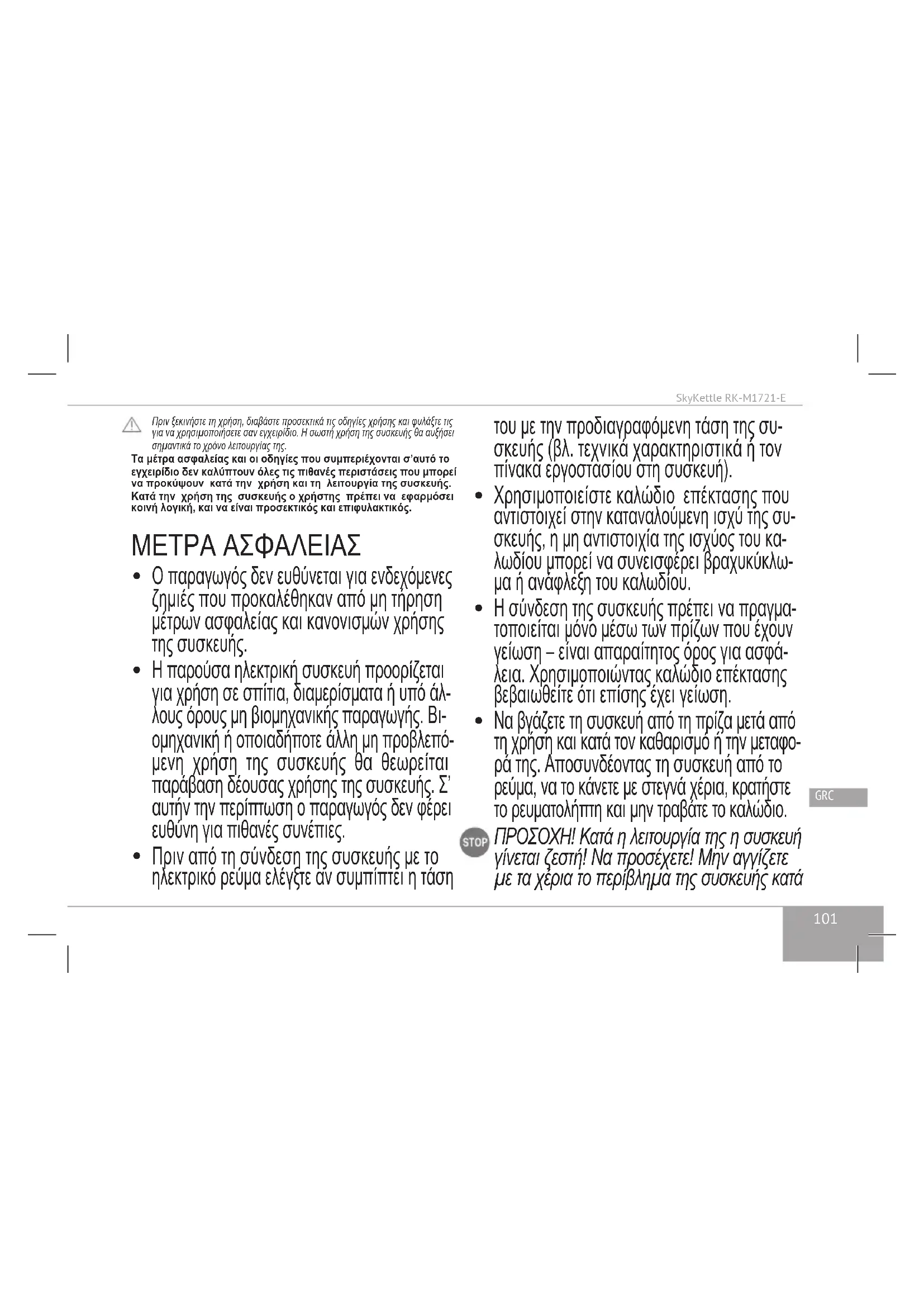 SkyKettle RK-M1721-E GBR FRA DEU NLD ITA ESP PRT DNK NOR SWE FIN LT U LVA EST ROU HUN BGR HRV SVK CZE POL GRС GRС TUR UKR KAZ ΠΡΟΣΟΧΗ! Πριν από τη χρήση βεβαιωθείτε ότι οι ηλεκτρικές επαφές της συσκευ- ής είναι στεγνές. Αφαιρούμενο φίλτρο καθαρισμού κλίμακας