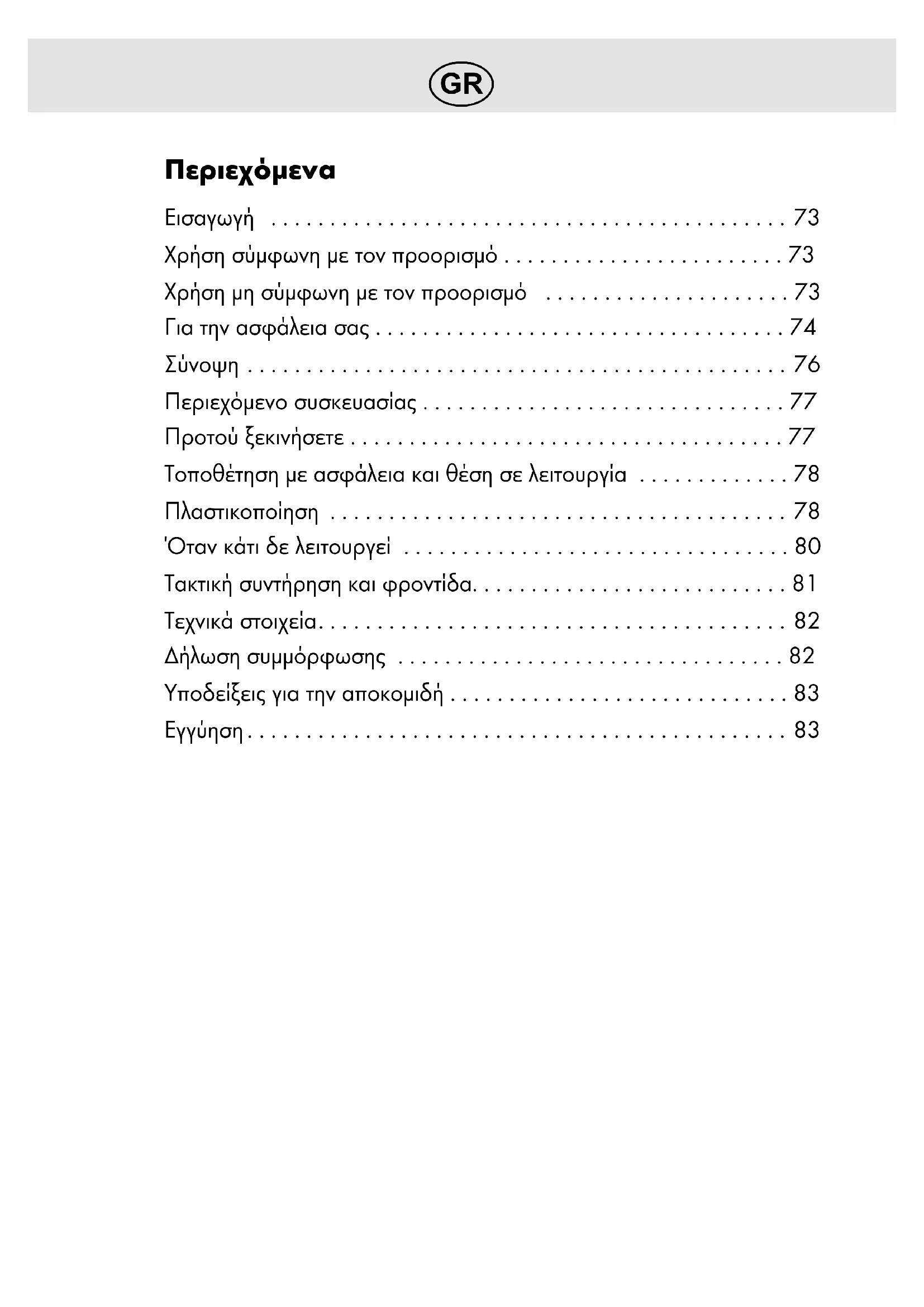- Χρήση σύμφωνη με τον προορισμό p. 73
