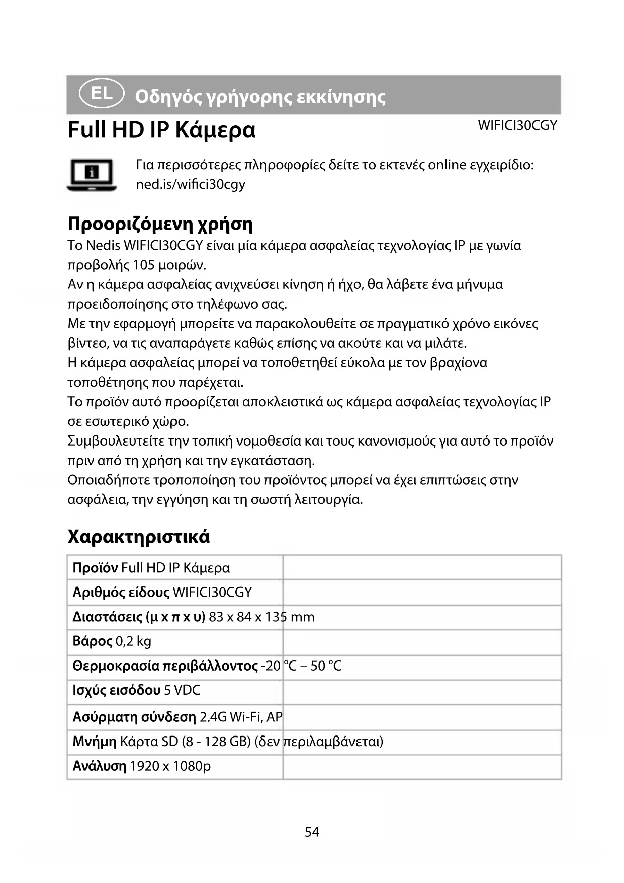 ΕΓΧΕΙΡΊΔΙΟ ΧΡΉΣΗΣ WIFICI30CGY NEDIS