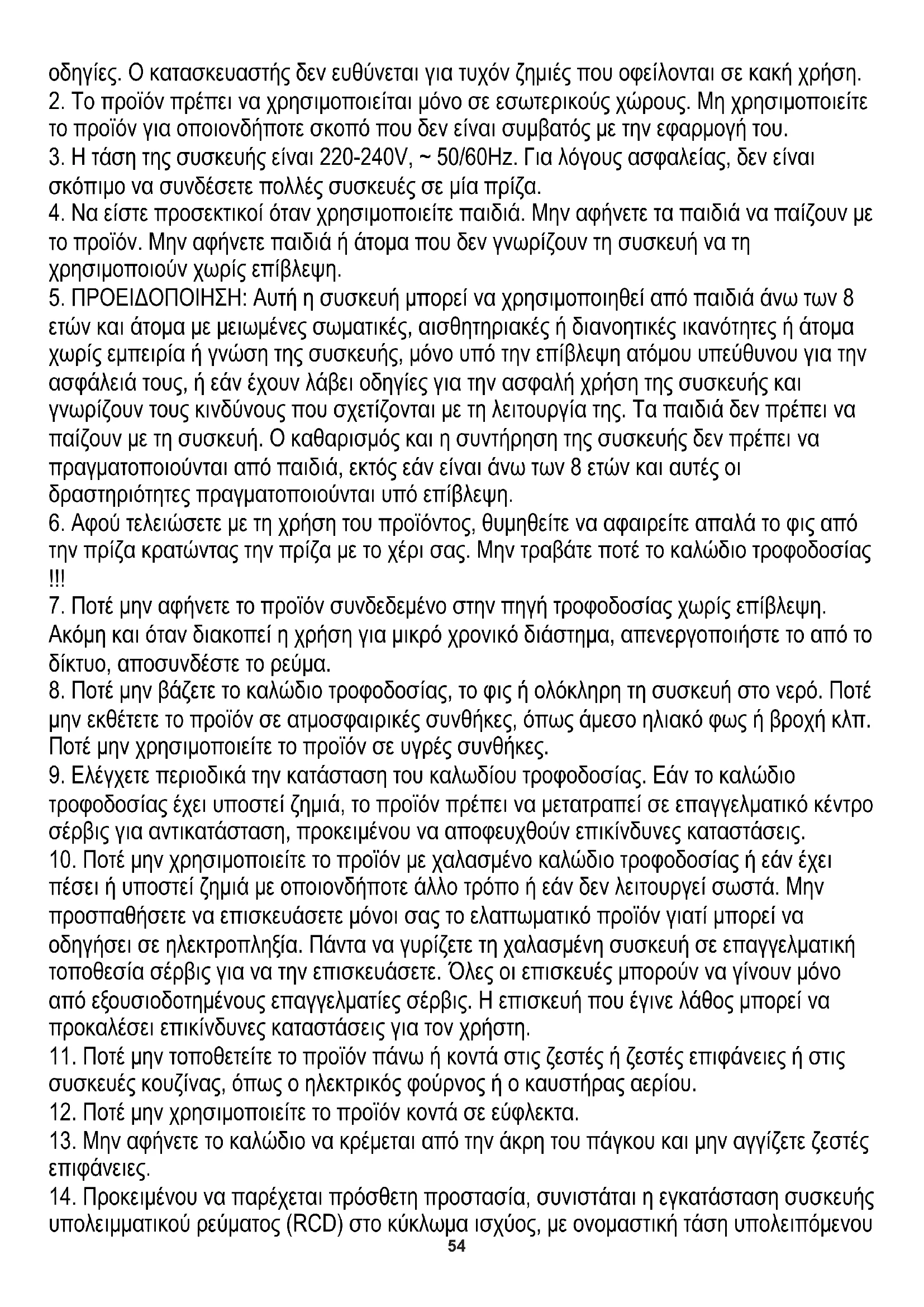 1. Πριν χρησιμοποιήσετε το προϊόν, διαβάστε προσεκτικά και τηρείτε πάντα τις ακόλουθες54