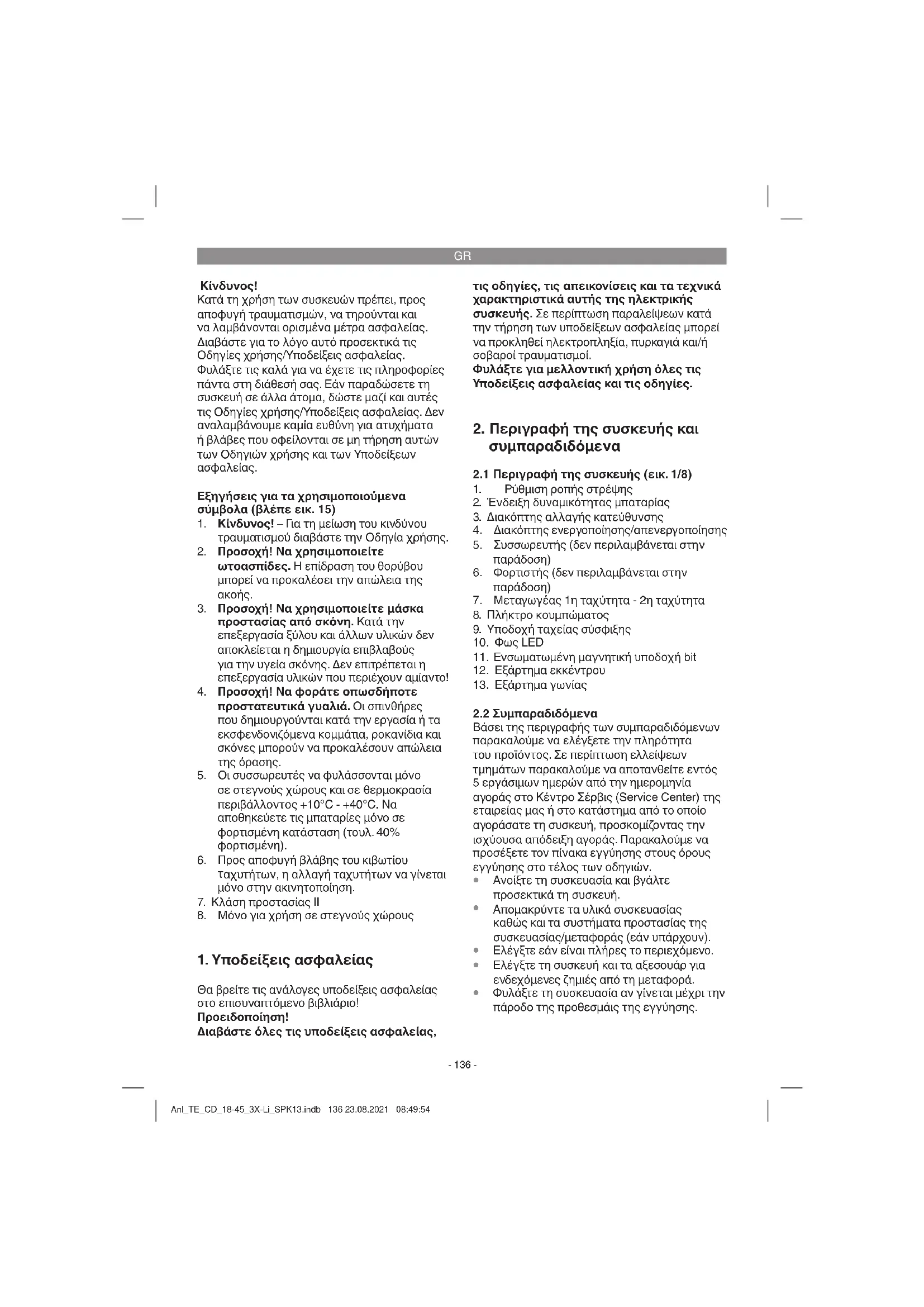 Φυλάξτε τη συσκευασία αν γίνεται μέχρι την πάροδο της προθεσμάις της εγγύησης. Anl_TE_CD_18-45_3X-Li_SPK13.indb 136 23.08.2021 08:49:54GR
