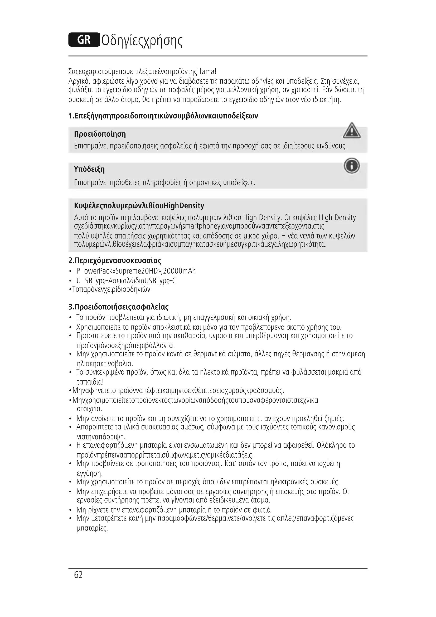 Κατεβάστε τις οδηγίες για το Φορητή μπαταρία σε μορφή PDF δωρεάν! Βρείτε το εγχειρίδιό σας Supreme 20HD 00187292 - HAMA και πάρτε ξανά την ηλεκτρονική σας συσκευή στα χέρια σας. Σε αυτή τη σελίδα δημοσιεύονται όλα τα έγγραφα που απαιτούνται για τη χρήση της συσκευής σας. Supreme 20HD 00187292 της μάρκας HAMA.