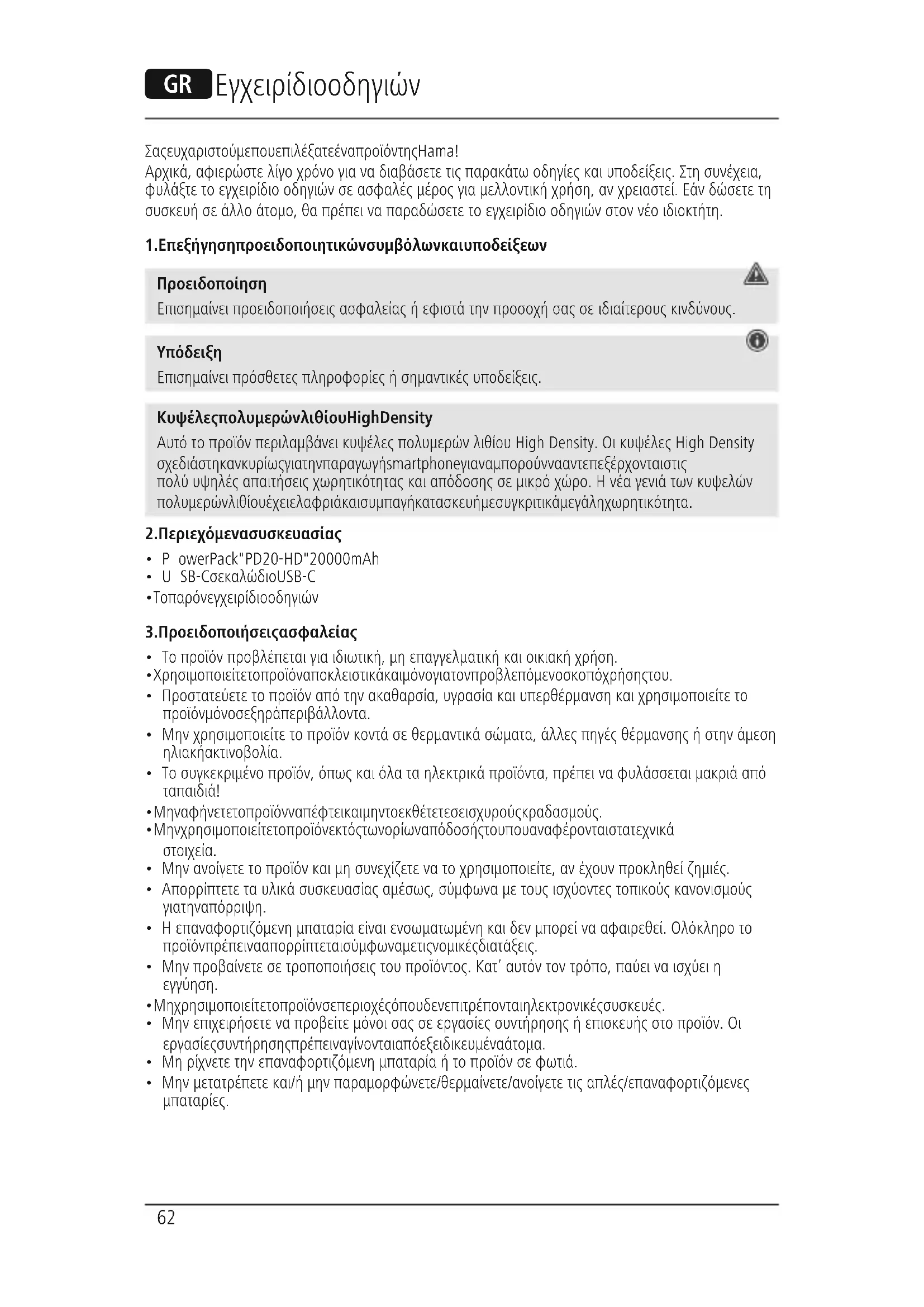 Κατεβάστε τις οδηγίες για το Φορητή μπαταρία σε μορφή PDF δωρεάν! Βρείτε το εγχειρίδιό σας PD20HD - HAMA και πάρτε ξανά την ηλεκτρονική σας συσκευή στα χέρια σας. Σε αυτή τη σελίδα δημοσιεύονται όλα τα έγγραφα που απαιτούνται για τη χρήση της συσκευής σας. PD20HD της μάρκας HAMA.
