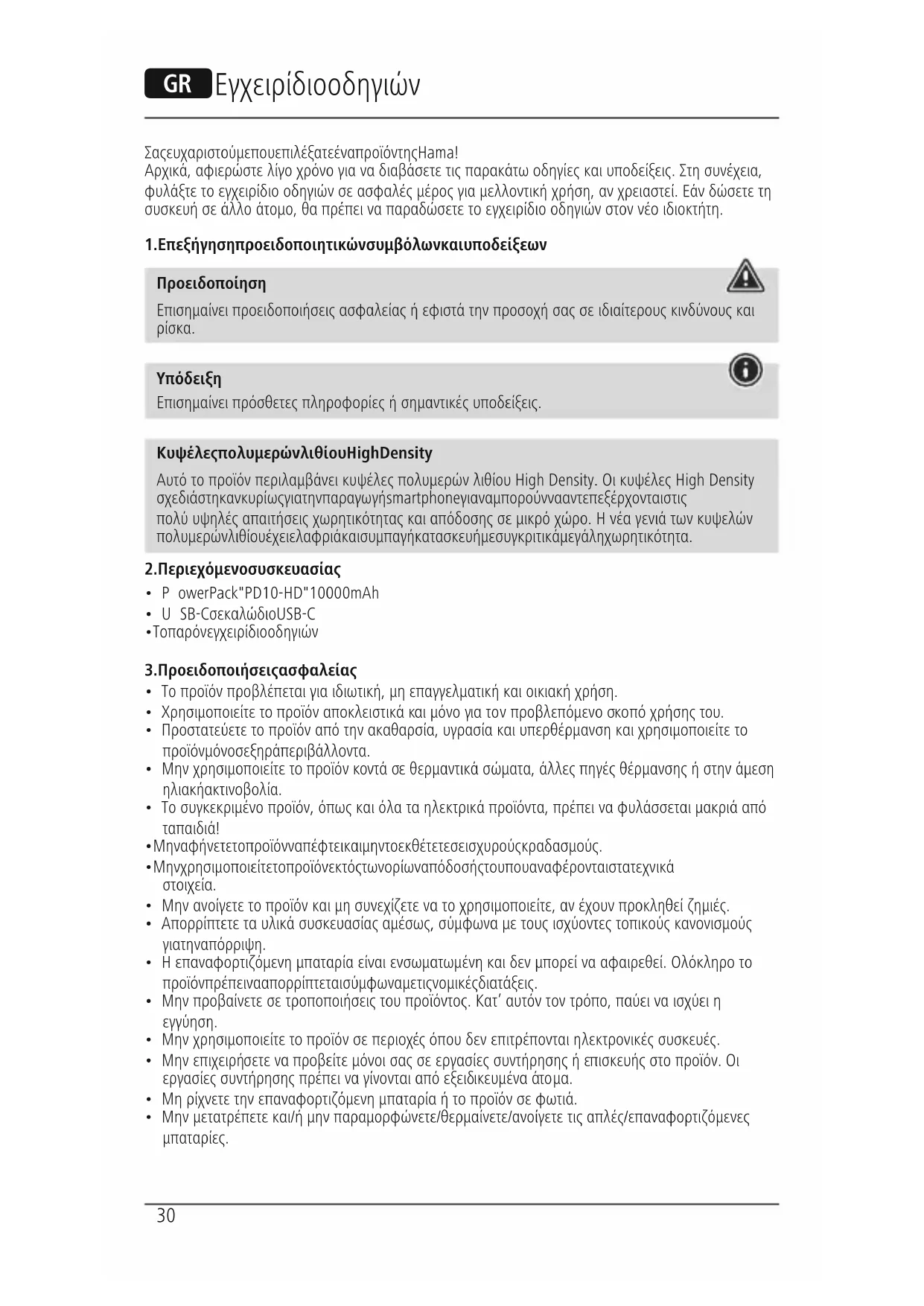 Κατεβάστε τις οδηγίες για το Φορητή μπαταρία σε μορφή PDF δωρεάν! Βρείτε το εγχειρίδιό σας PD10HD 00187261 - HAMA και πάρτε ξανά την ηλεκτρονική σας συσκευή στα χέρια σας. Σε αυτή τη σελίδα δημοσιεύονται όλα τα έγγραφα που απαιτούνται για τη χρήση της συσκευής σας. PD10HD 00187261 της μάρκας HAMA.