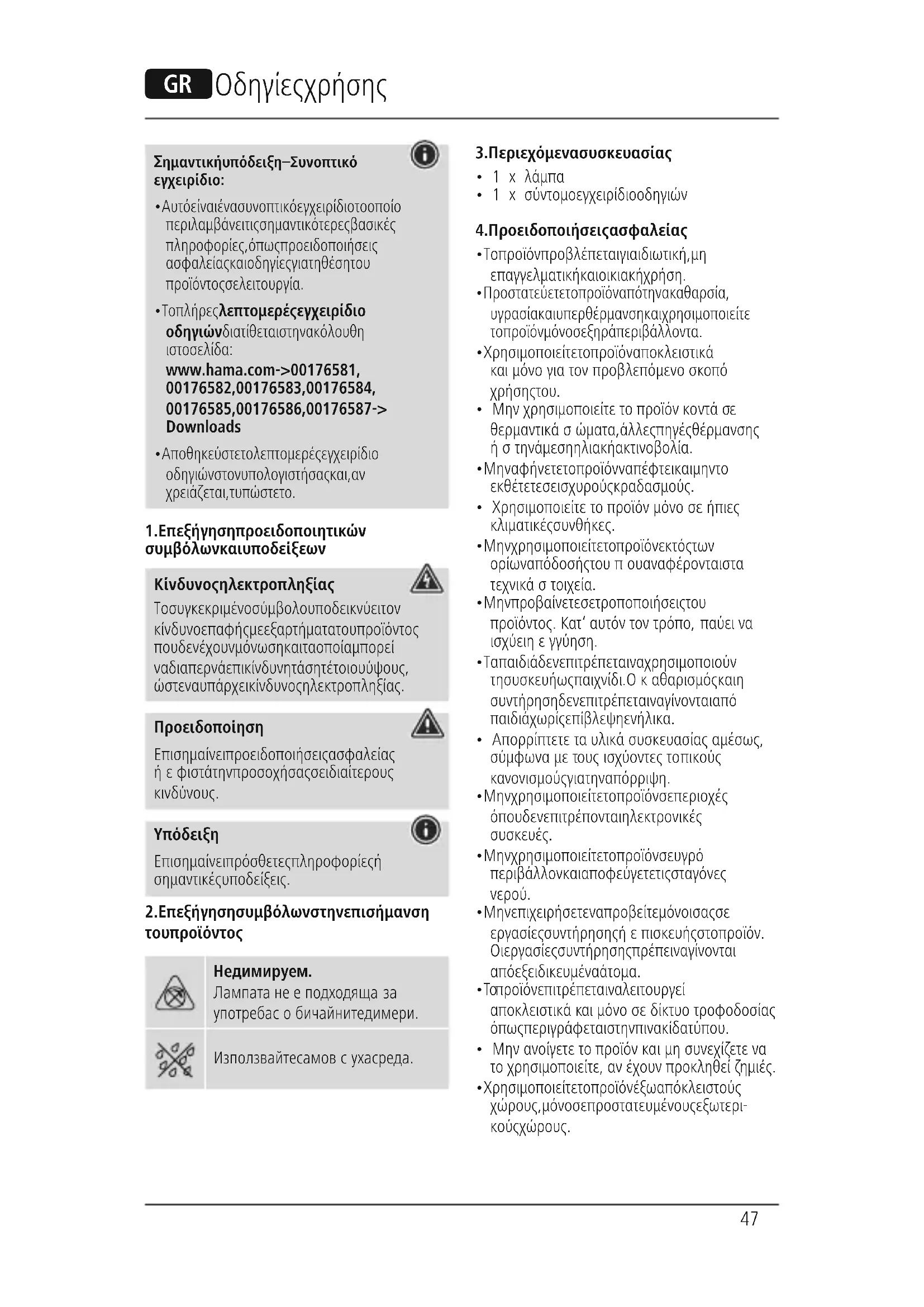 - Το πλήρες λεπτομερές εγχειρίδιο οδηγιών διατίθεται στην ακόλουθη ιστοσελίδα: www.hama.com -> 00176581, 00176582, 00176583, 00176584, 00176585, 00176586, 00176587 -> Downloads