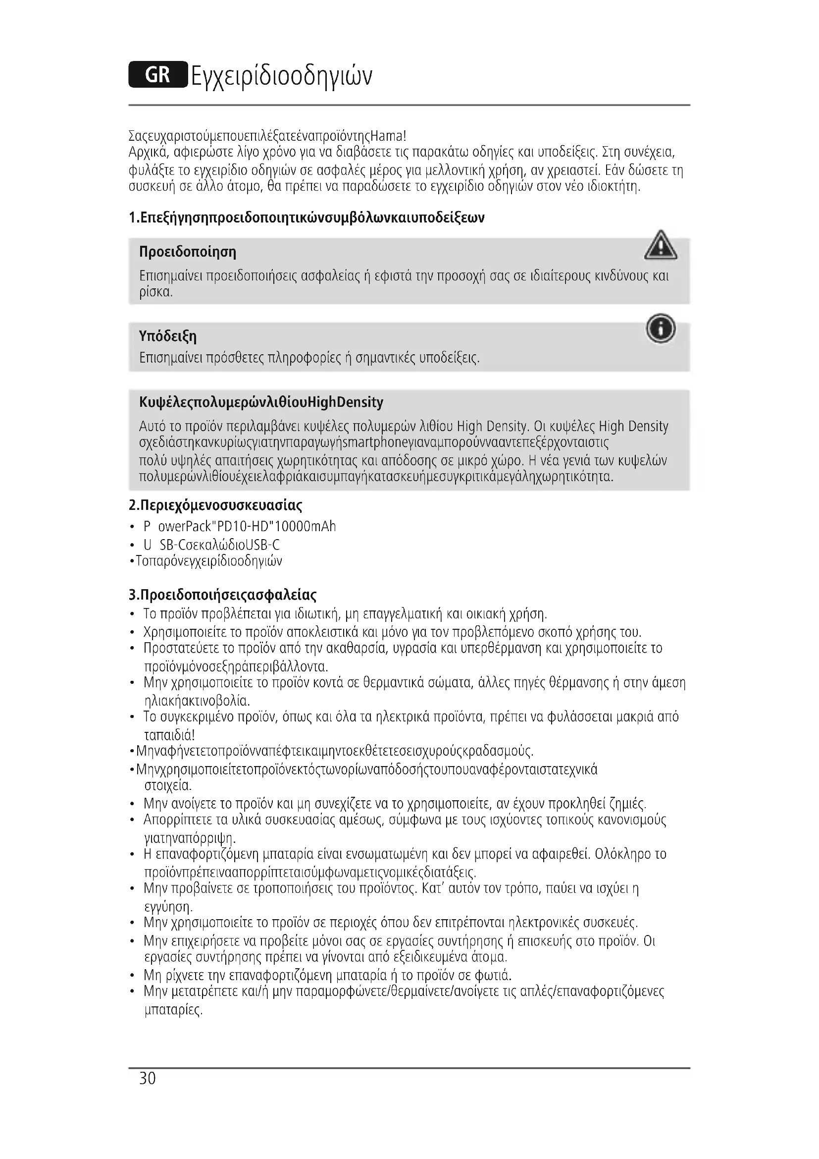 - Μη φορτίζετε ταυτόχρονα από τις δύο εξόδους USB και USB-C, γιατί έτσι μειώνεται σημαντικά το ρεύμα φόρτισης. Ηδιάρκεια φόρτισης αυξάνεται σημαντικά και το Power Pack μπορεί να υπερφορτωθεί υπό ορισμένες συνθήκες.32 Προειδοποίηση