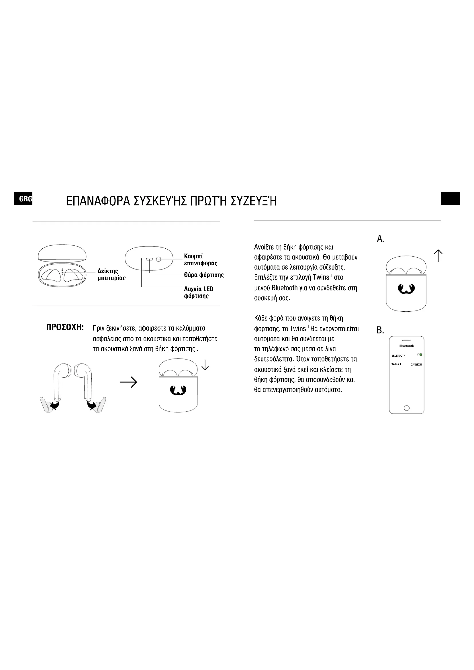 μενού Bluetooth για να συνδεθείτε στη συσκευή σας. Κάθε φορά που ανοίγετε τη θήκη φόρτισης, το Twins
