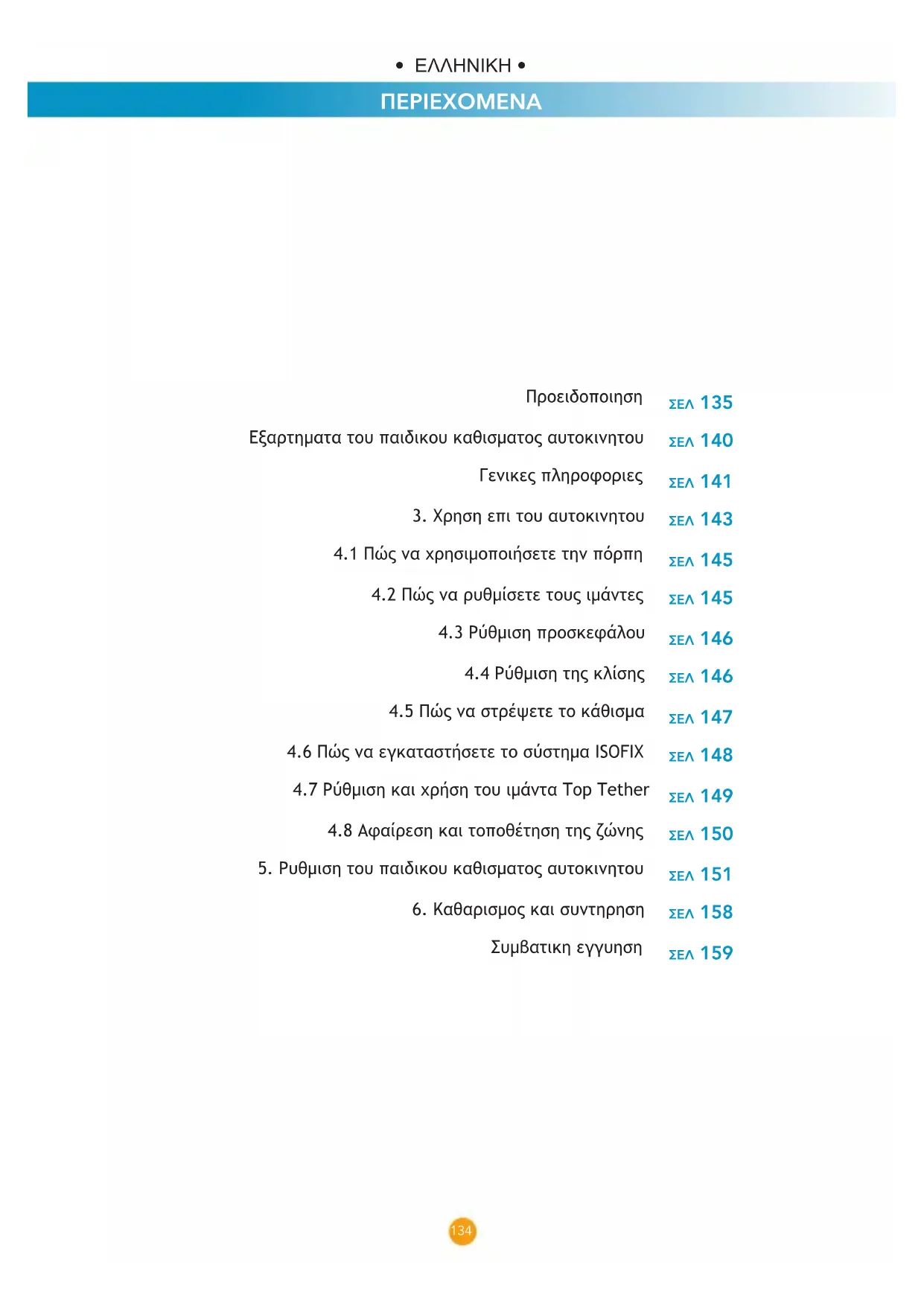 σελ 135 σελ 140 σελ 141 σελ 143 σελ 145 σελ 145 σελ 146 σελ 146 σελ 147 σελ 148 σελ 149 σελ 150 σελ 151 σελ 158 σελ 159 ΠΕΡΙΕΧΟΜΕΝΑ ΠΡΟΕΙΔΟΠΟΙΗΣΗ Προειδοποιηση Εξαρτηματα του παιδικου καθισματος αυτοκινητου Γενικες πληροφοριες