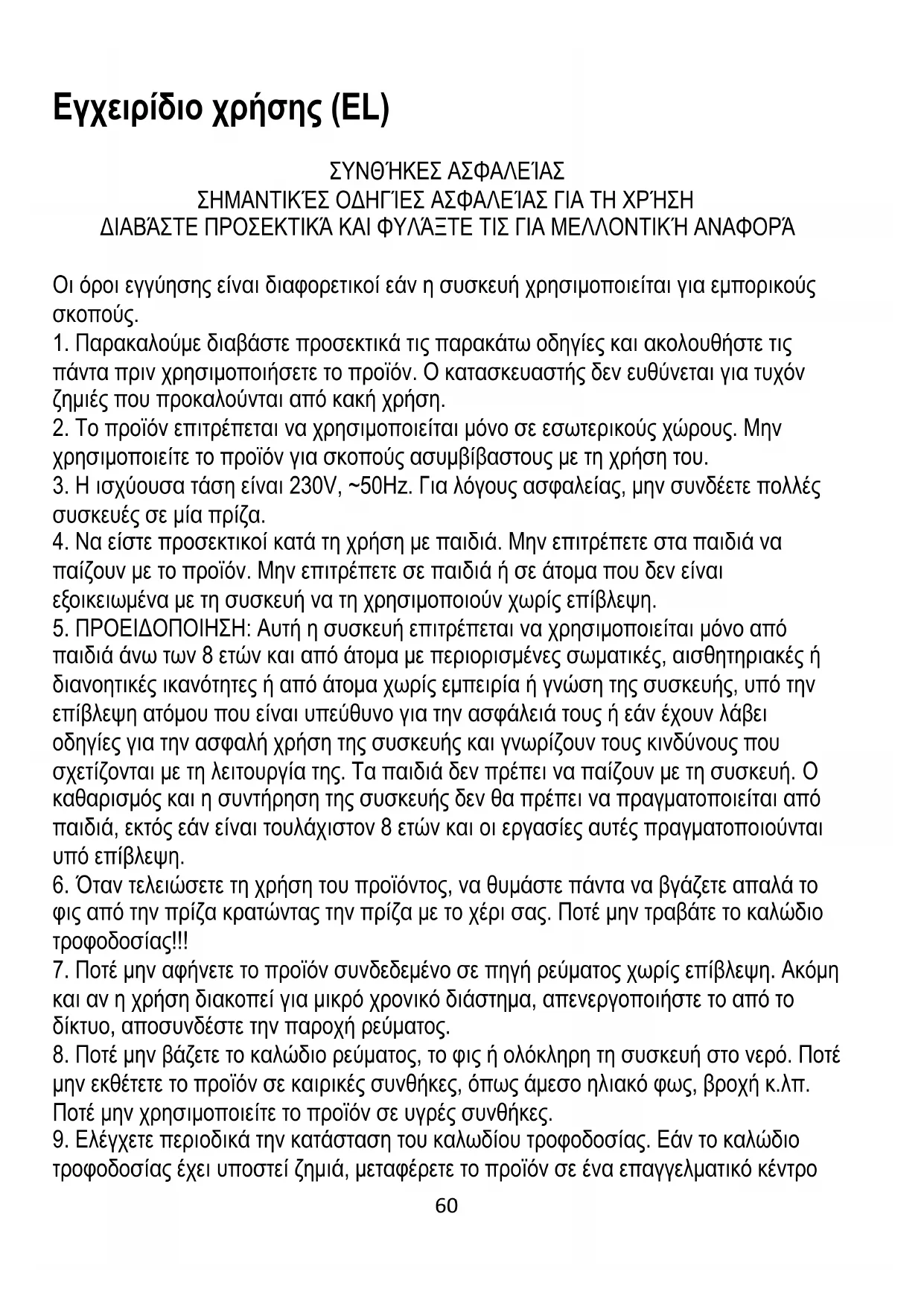 πάντα πριν χρησιμοποιήσετε το προϊόν. Ο κατασκευαστής δεν ευθύνεται για τυχόν ζημιές που προκαλούνται από κακή χρήση.