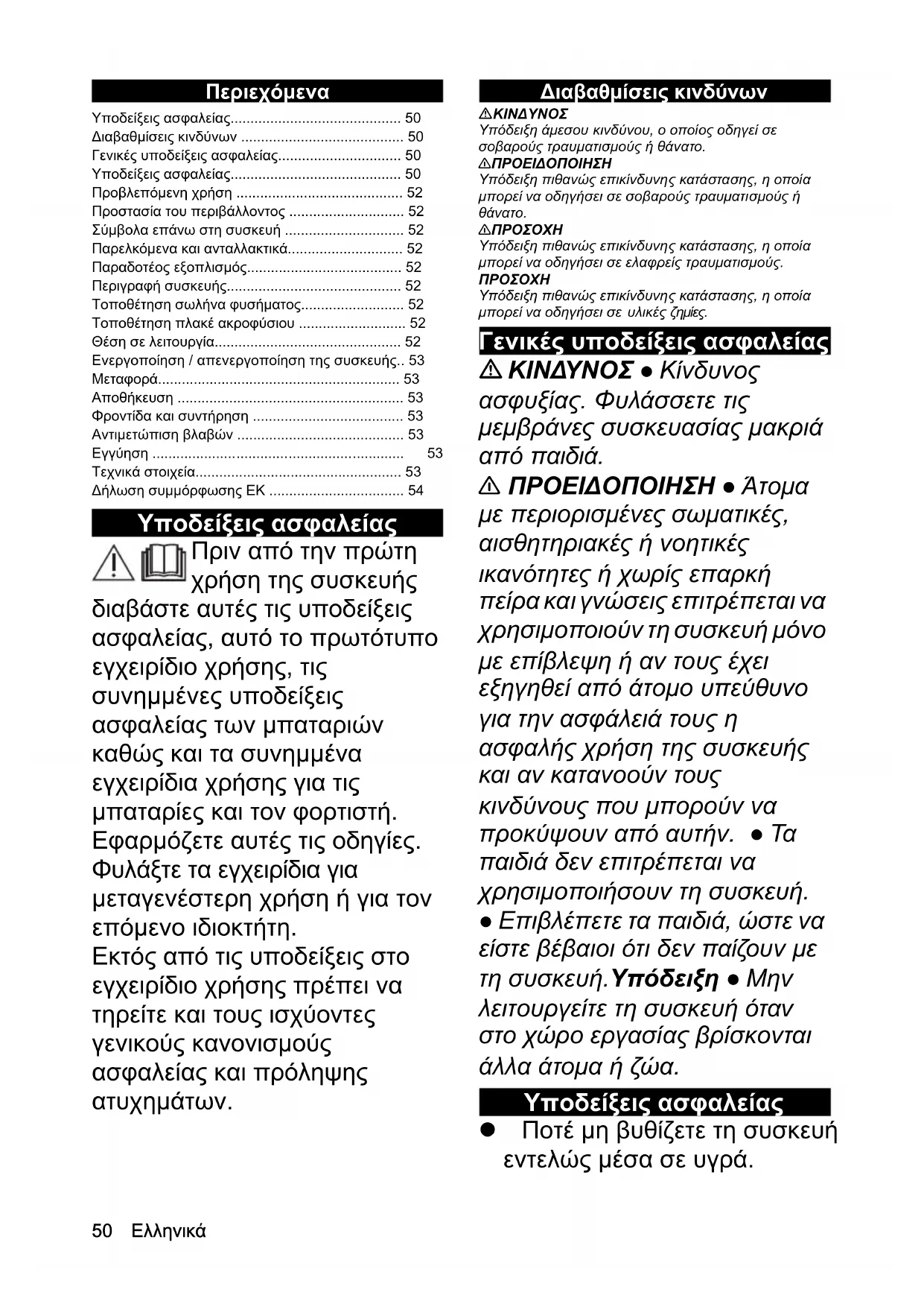 - Γενικές υποδείξεις ασφαλείας p. 50