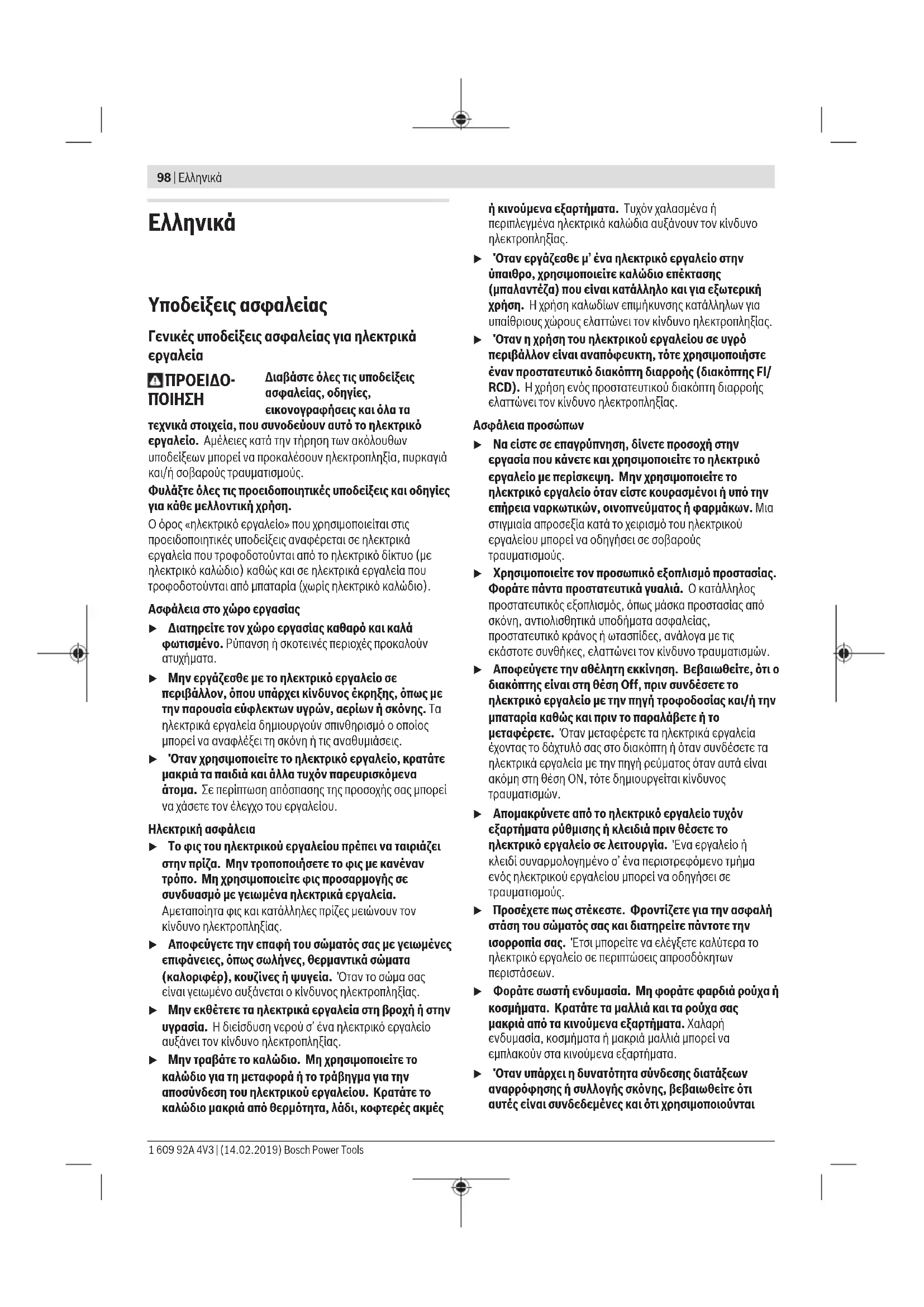 Υποδείξεις ασφαλείας Γενικές υποδείξεις ασφαλείας για ηλεκτρικά