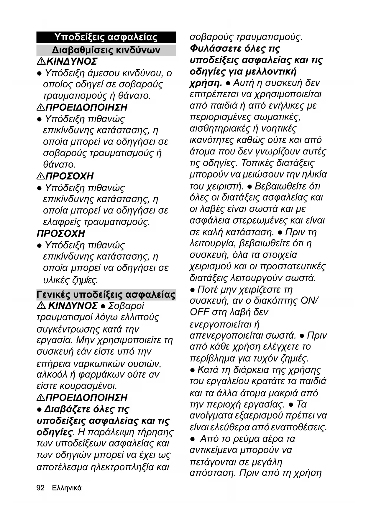 ● Υπόδειξη άμεσου κινδύνου, ο οποίος οδηγεί σε σοβαρούς τραυματισμούς ή θάνατο. 몇 ΠΡΟΕΙΔΟΠΟΙΗΣΗ ● Υπόδειξη πιθανώς επικίνδυνης κατάστασης, η οποία μπορεί να οδηγήσει σε σοβαρούς τραυματισμούς ή