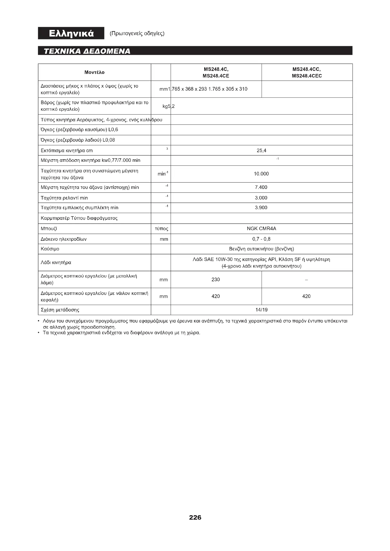 Oópuβoç (μοντέλο: MS248.4CC, MS248.4CEC)