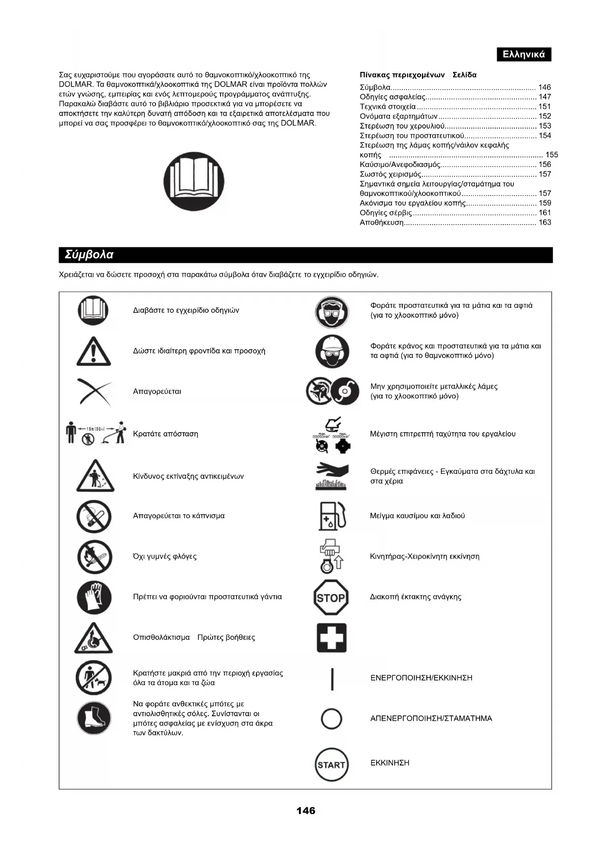 - Πίνακας περιεχομένων Σελίδα Σύμβολα p. 146