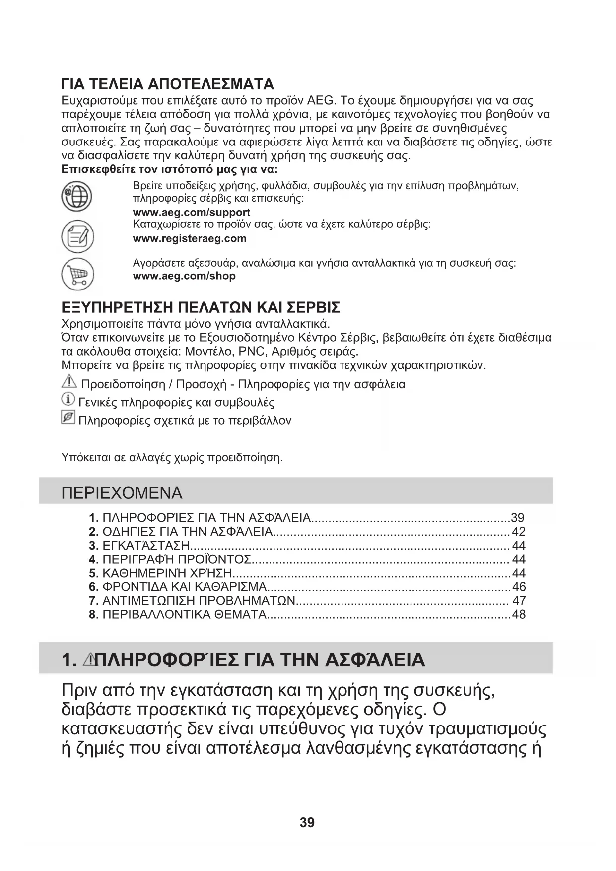1. ΠΛΗΡΟΦΟΡΊΕΣ ΓΙΑ ΤΗΝ ΑΣΦΆΛΕΙΑ