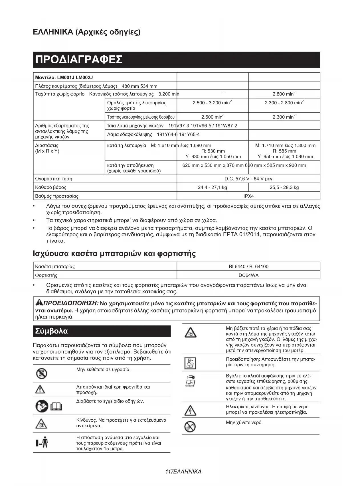 Μηχανή γκαζόν με μπαταρία ΕΓΧΕΙΡΙΔΙΟ ΟΔΗΓΙΩΝ 117