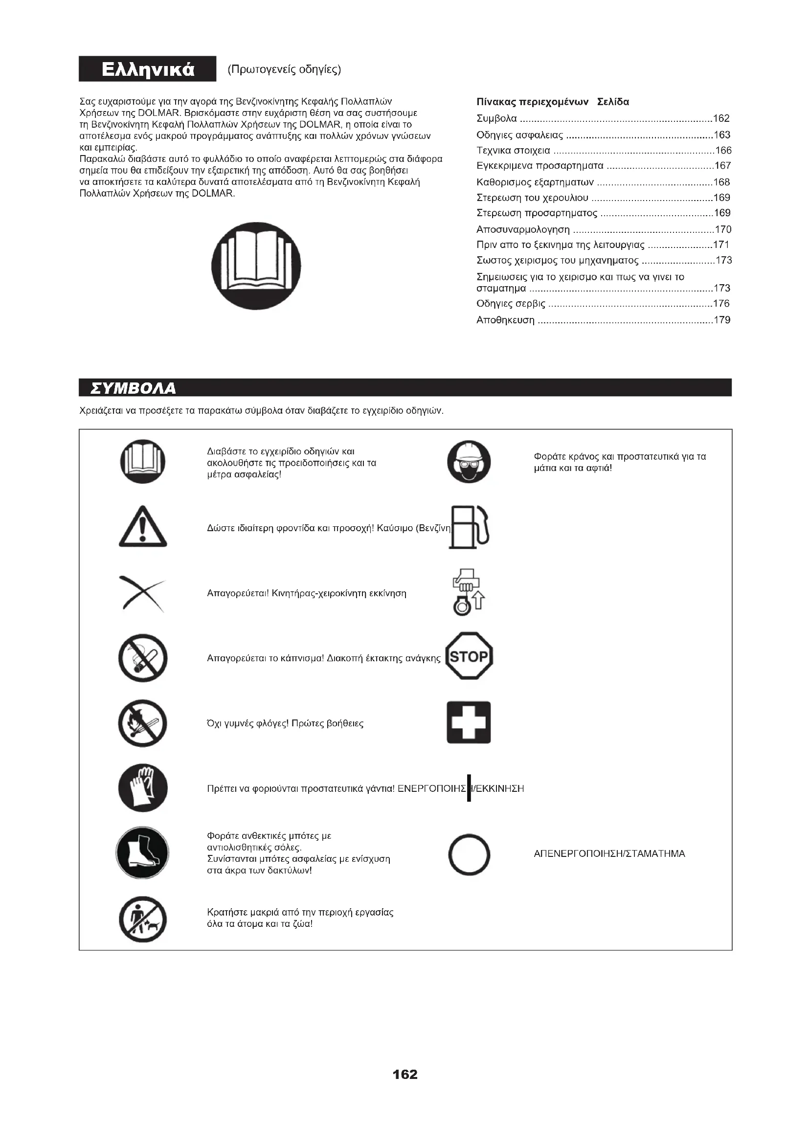 - (Πρωτογενείς οδηγίες) Πίνακας περιεχομένων ΣελίδαΣυμβολα p. 162
