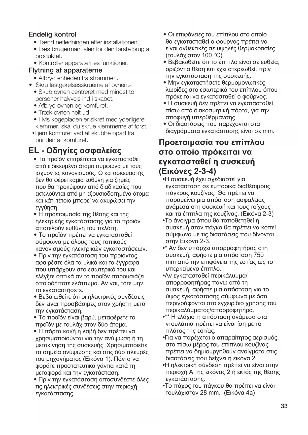 - Οι επιφάνειες του επίπλου στο οποίο θα εγκατασταθεί ο φούρνος πρέπει να είναι ανθεκτικές σε υψηλές θερμοκρασίες (τουλάχιστον 100 °C).