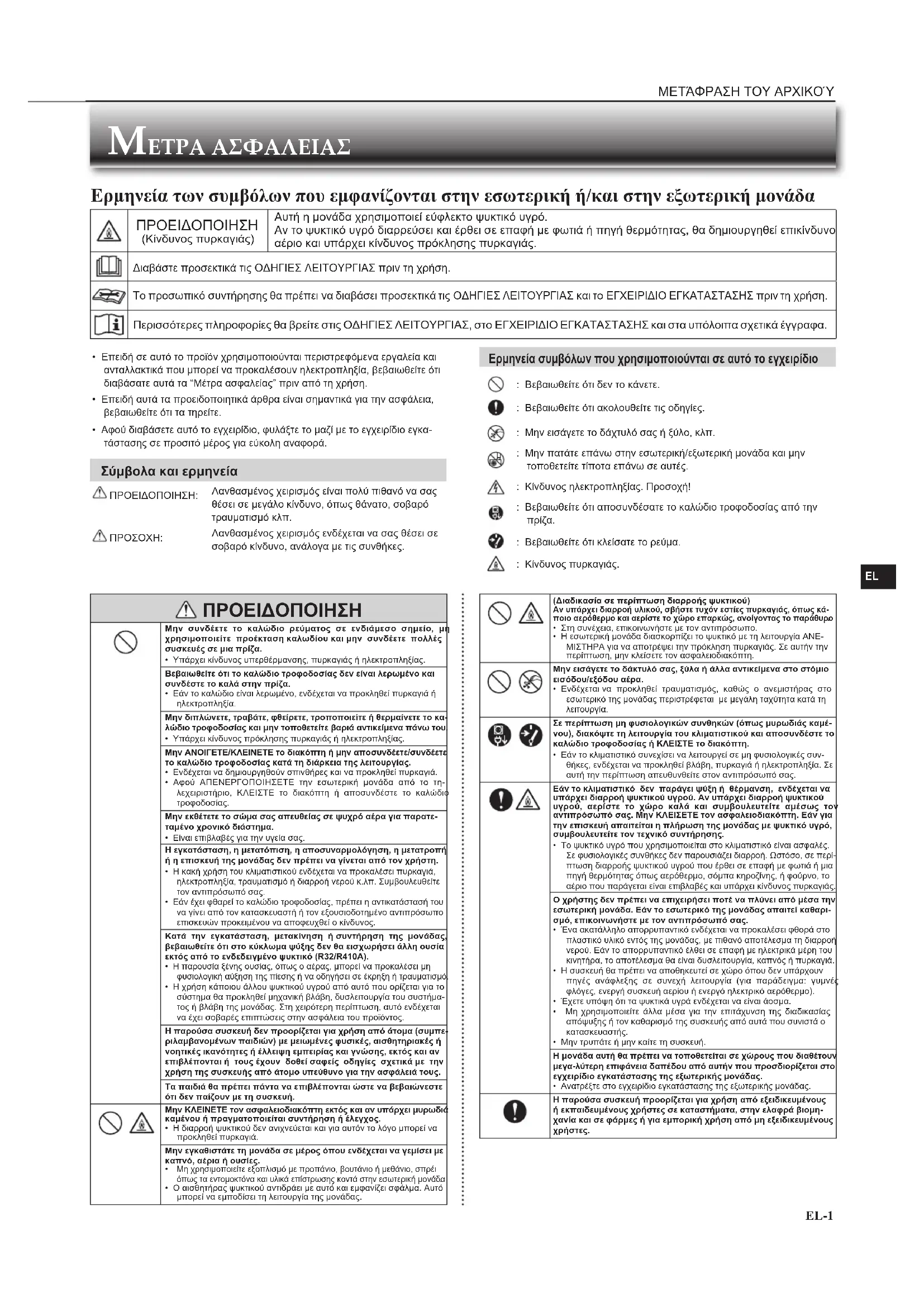 | ΠΡΟΕΙΔΟΝΙΗΝΗ (KΙνδυος ΠΙρκαγίας) | Αυτήη μονάδα χρησιμοτοίει εύφλεκτο Φικτικό uγρό. Αν το υμικτόν Μυρό διαρρεύσει και ερθει σε επαρή με φωτία ἡ πηγθερμότητας, θα δημιουργηθει επικινδυο αερίο και Αντάρχει Κινδυος πρόκλησης Πυρκαγίας. |