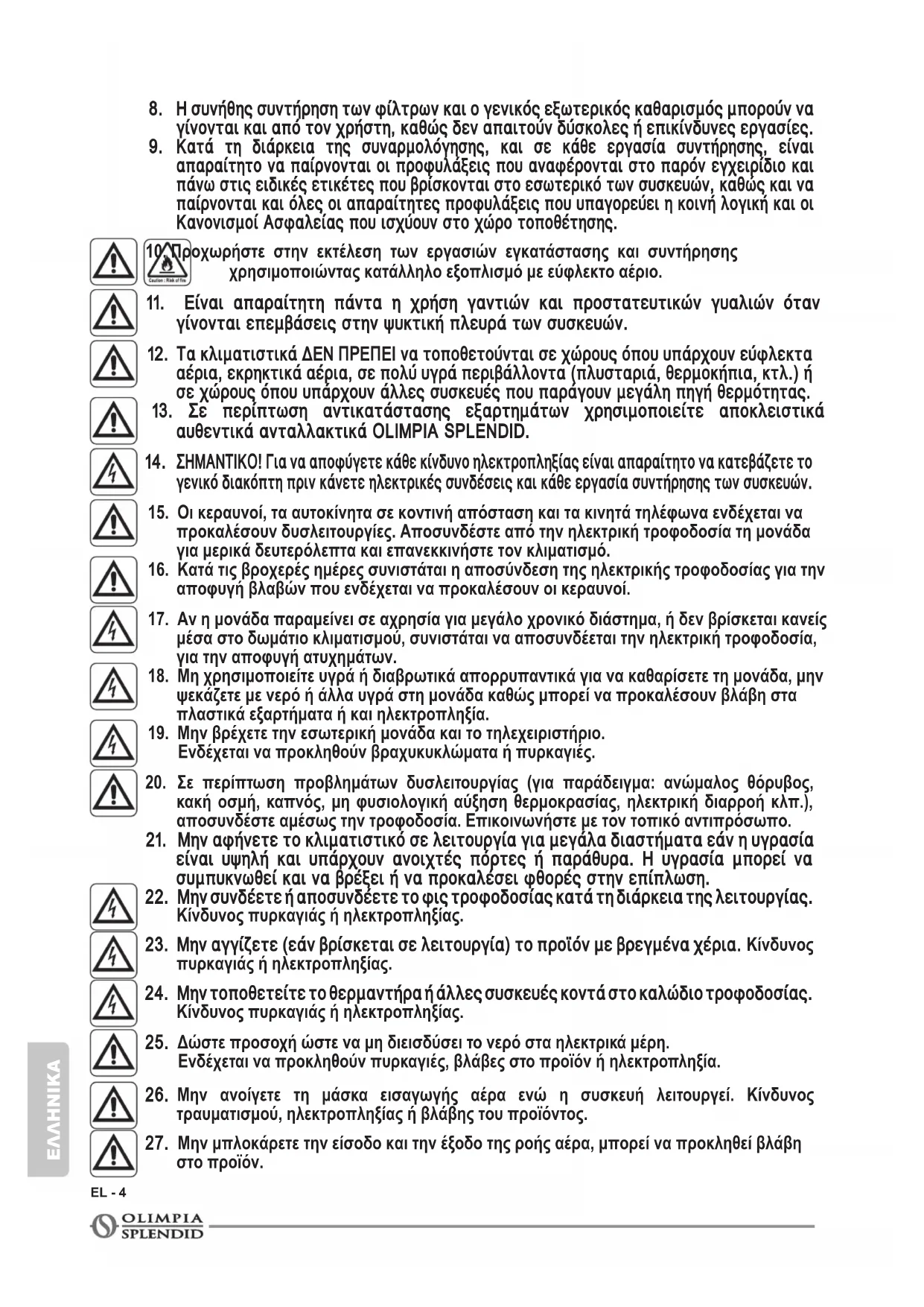 ðåñéÝ÷ïíôáé óôï ðáñüí åã÷åéñßäéï êáé ÷ñÞóç ðÝñáí ôùí ïñßùí èåñìïêñáóßáò ðïõ êáèïñßæïíôáé ó’ áõôü, áêõñþíïõí ôçí åããýçóç. ΚΑΤΑ ΤΗ ΧΡΗΣΗ ΗΛΕΚΤΡΙΚΟΥ ΕΞΟΠΛΙΣΜΟΥ, ΠΡΕΠΕΙ ΠΑΝΤΑ ΝΑ ΤΗΡΟΥΝΤΑΙ ΟΙ ΒΑΣΙΚΕΣ ΠΡΟΦΥΛΑΞΕΙΣ ΑΣΦΑΛΕΙΑΣ ΩΣΤΕ ΝΑ ΜΕΙΩΘΟΥΝ ΟΙ ΚΙΝΔΥΝΟΙ ΠΥΡΚΑΓΙΑΣ, ΗΛΕΚΤΡΟΠΛΗΞΙΑΣ ΚΑΙ ΤΡΑΥΜΑΤΙΣΜΩΝ ΣΕ ΑΤΟΜΑ ΣΥΜΠΕΡΙΛΑΜΒΑΝΟΜΕΝΩΝ ΟΣΩΝ ΑΚΟΛΟΥΘΟΥΝ: ΑΠΕΙΚΟΝΙΣΕΙΣ Οι απεικονίσεις έχουν ομαδοποιηθεί στις αρχικές σελίδες του εγχειριδίουEL - 4