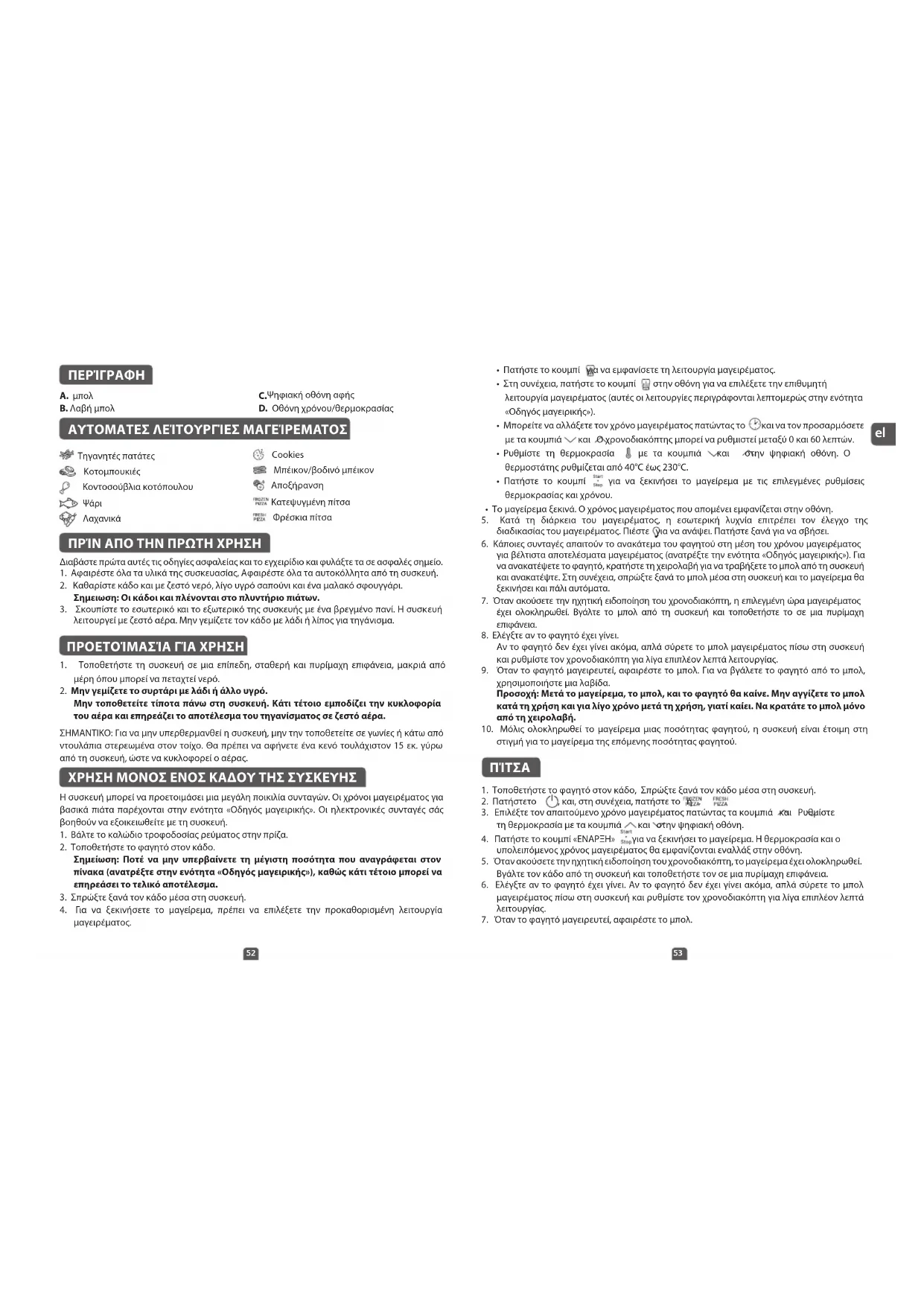 Κατεψυγμένη πίτσα Φρέσκια πίτσα ΠΡΊΝ ΑΠΟ ΤΗΝ ΠΡΩΤΗ ΧΡΗΣΗ Διαβάστε πρώτα αυτές τις οδηγίες ασφαλείας και το εγχειρίδιο και φυλάξτε τα σε ασφαλές σημείο.