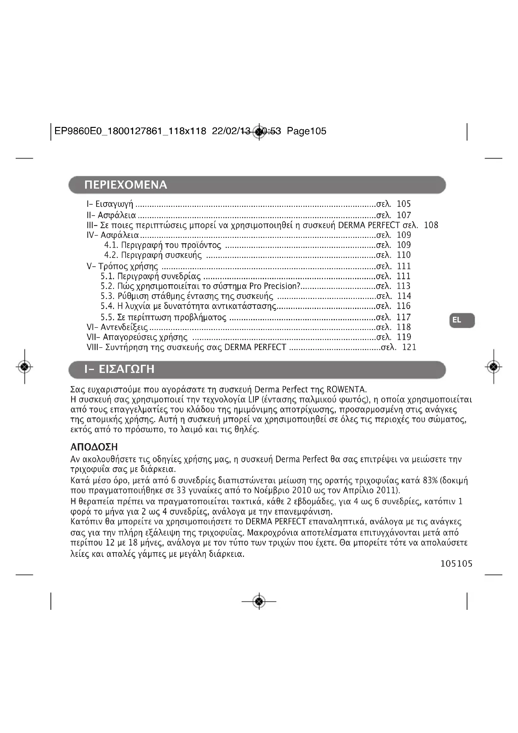 ΕΓΧΕΙΡΊΔΙΟ ΧΡΉΣΗΣ Derma Perfect EP9860 ROWENTA