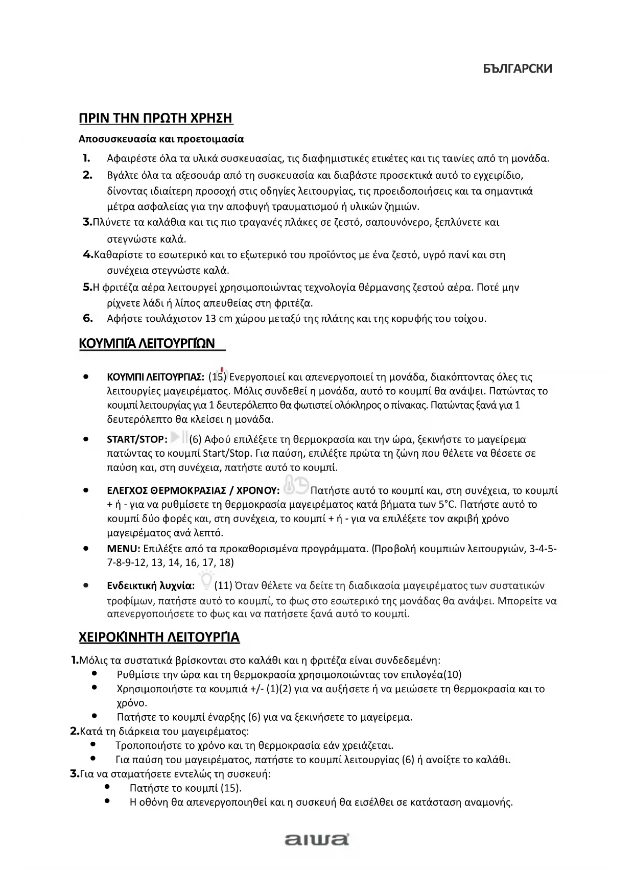 Για να σταματήσετε εντελώς τη συσκευή: Πατήστε το κουμπί λειτουργίας (15). Η οθόνη απενεργοποιείται, η συσκευή εισέρχεται σε κατάσταση αναμονής. ΚΑΘΑΡΙΣΜΌΣ ΤΗΣ ΦΡΙΤΈΖΑΣ ΑΈΡΑ