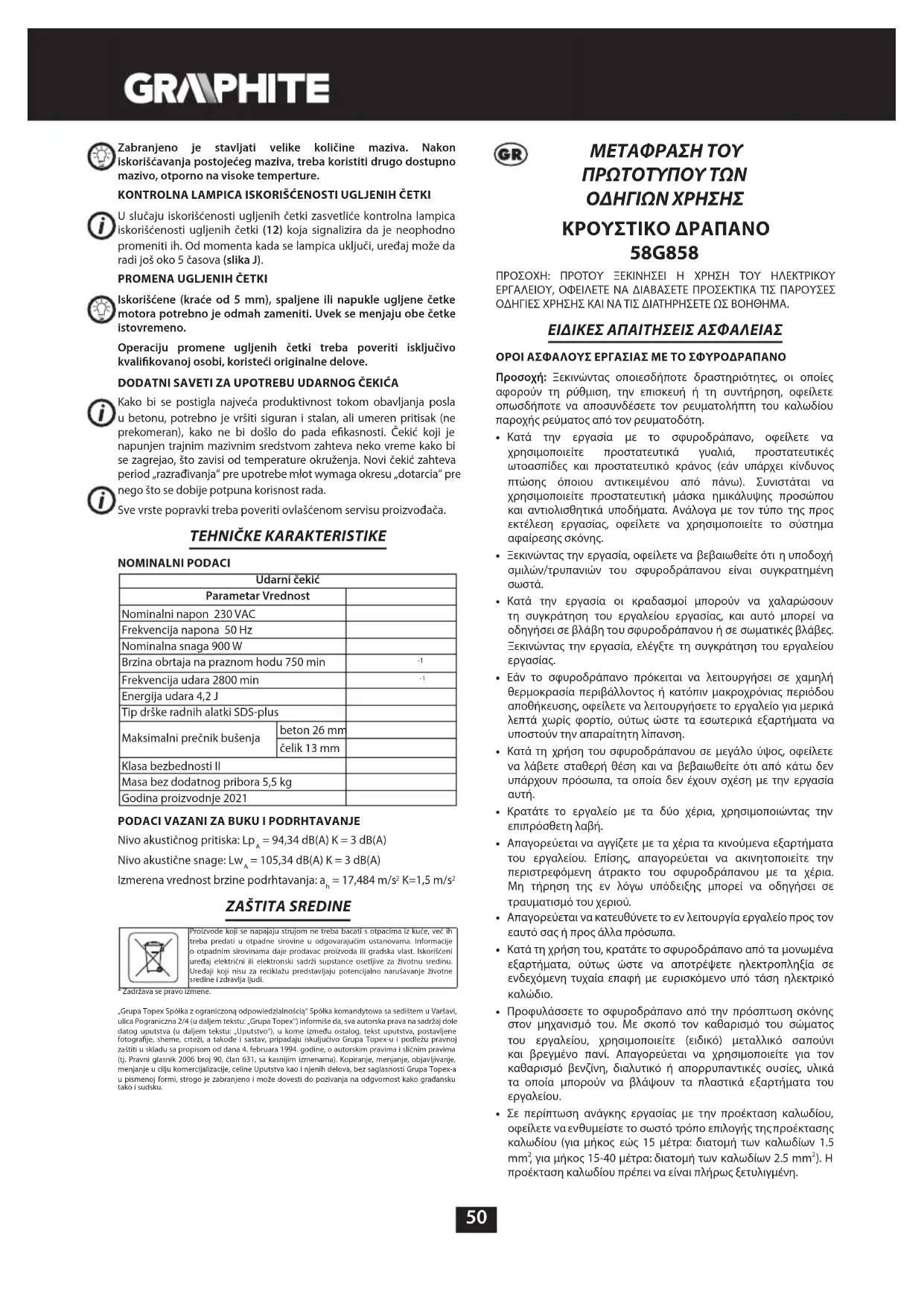58G858 - τρυπάνι Graphite - Δωρεάν εγχειρίδιο χρήσης